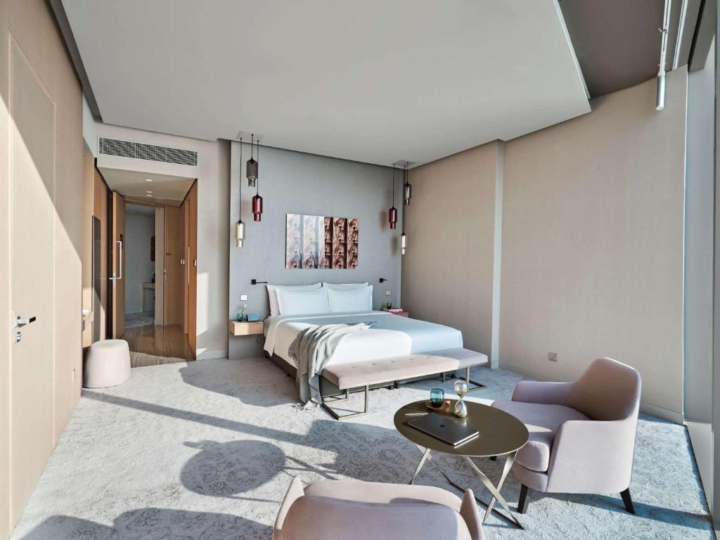 Deluxe Room- cтильний вид на місто та бічний вид на море від підлоги до стелі. Просторі номери площею від 37 до 48 м² мають спальню та зону відпочинку з 48-дюймовим LED-телевізором. Окрема ванна кімната з ванною або окремим душем з туалетно-косметичними засобами Chopard. Premium Room- з просторих номерів площею 37-48 м² відкривається вражаючий вид на Перську затоку та Дубайське око (The Ain). До послуг спальня та зона відпочинку з 48-дюймовим LED-телевізором. Окрема ванна кімната з ванною або окремим душем з туалетно-косметичними засобами Chopard. Junior Suite- площею 48 м² з мальовничим видом на легендарний горизонт JBR має вітальню та спальню з 48-дюймовим телевізором із плоским екраном, кавоваркою, робочим столом та окремою ванною кімнатою з ванною, окремим душем та туалетно-косметичними засобами Chopard. Deluxe One Bedroom Suite- люкс площею 84 м² має захоплюючий вид на міський горизонт і частковий вид на море. Кожен з цих люксів оснащений просторою зоною вітальні, обіднім столом і кавоваркою для максимальної розкоші. Premium One Bedroom Suite- із захоплюючим видом на чисте море Перської затоки та Дубайське око. Люкси площею від 84 до 94 м² обладнані просторою зоною вітальні, обіднім столом і кавоваркою для приготування еспресо для максимального розважального відпочинку. Premium Two Bedroom Suite- люкс площею 125 м² з панорамним видом на незайману Перську затоку та Палм Джумейра має простору вітальню з телевізором Apple TV, мікрохвильовою піччю, холодильником, кавоваркою еспресо та прикрасами Chopard, щоб ви відчували себе як вдома. У всіх номерах: Все необхідне для приготування кави / чаю Міні-бар Безкоштовна мінеральна вода в номері Міні-холодильник Халат/капці Високошвидкісний інтернет