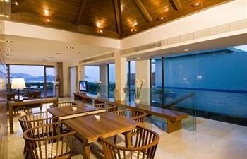 Большое лобби с обзорной площадкой и видом на море.