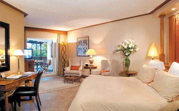 - ванная комната с душевой кабиной, феном и туалетными принадлежностями. Во всех люксах отеля Beachcomber Royal Palm есть собственный внутренний двор с видом на тропический сад и Гранд Баи.