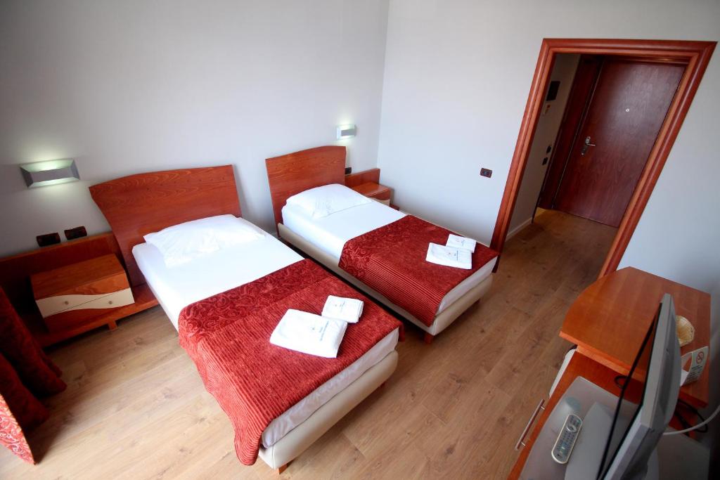 Розміщення у готелі Saranda International 4* У готелі є 59 номерів різних категорій. У кожному номері є кондиціонер, телевізор, міні-бар (платно), шафа для одягу, стіл, дзеркало, тумби, окрема ванна кімната (душова кабіна, с/в, туалетно-косметичні приналежності, рушники). STANDARD DBL, близько 25 м², номери з двоспальним ліжком. Всього 20 номерів STANDARD TWIN, близько 25 м², номери з двома односпальними ліжками. Всього 23 номерів STANDARD TRPL, близько 28 м², номери з трьома односпальними ліжками або одним двоспальним та одним односпальним ліжком. Усього в готелі 10 номерів. Family Room (Connected rooms), близько 50 м², це два стандартні номери DBL і TWIN, з'єднані міжкімнатними дверима. Вони можуть використовуватися і як окремі стандартні номери. У готелі лише 3 пари стандартних номерів утворюють Family Room.