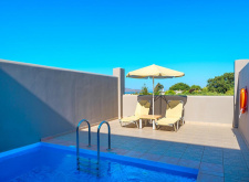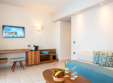 Всього в готелі 102 номери: Superior Room – 32 кв. (макс. 2): спальна кімната з двоспальним ліжком або двома одномісними ліжками, мебльований балконuperior Room Private Pool – 37 кв. (макс. 3): спальна кімната з двоспальним ліжком або двома одномісними ліжками та додатковим диваном-ліжком, мебльована тераса. Family Junior Suite – 46 кв. (макс. 4): головна спальна кімната з двоспальним ліжком і додаткова спальна кімната з двома одномісними ліжками або двома диванами-ліжками (кімната може використовуватися як простора вітальня). Мебльований балкон або тераса Family Junior Suite Private Pool – 50 кв. (макс. 4): головна спальна кімната з двоспальним ліжком і додаткова спальна кімната з двома одномісними ліжками або двома диванами-ліжками (кімната може використовуватися як простора вітальня). Мебльований балкон або тераса з басейном Superior Suite Sea View Private Pool – 60 кв. (макс. 4): головна спальна кімната з двоспальним ліжком, вітальня (відокремлена розсувними дверима), друга спальна кімната з двома диванами-ліжками. Мебльована тераса з приватним басейном У номерах: Кондиціонер. Wi-Fi інтернет. Телевізор із супутниковими каналами. Сейф. Телефон. Міні-бар. Фен. Вода / Келихи. Міні холодильник. Чайник