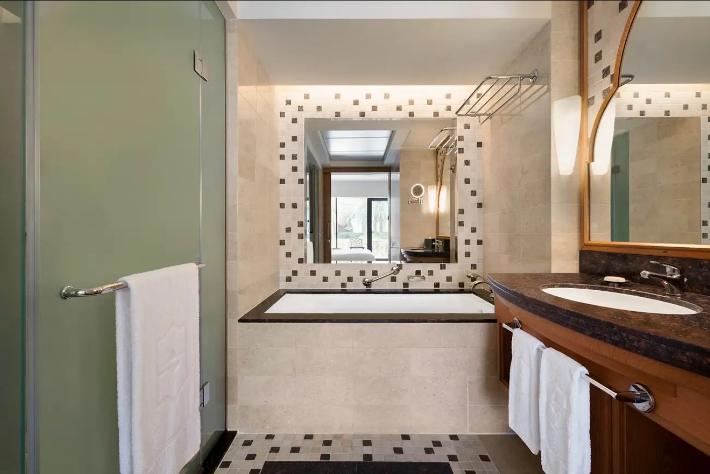 Al Waha One Bedroom Suite (68 кв. м) пропонує надихаючі краєвиди у вишуканій обстановці. Ці просторі люкси, оформлені в нейтральних земляних тонах з багатими дерев'яними та коштовними акцентами, мають окрему вітальню з інтимною обідньою зоною та просторий приватний балкон з безтурботним видом на сади в напрямку Оманської затоки. Чудовий вид на сад і море з окремого балкона. Простора ванна кімната, оздоблена мармуром, з душовою кабіною та окремою глибокою ванною. Al Waha Specialty Suite (102 кв. м) пропонує гостям надихаючі краєвиди у вишуканій обстановці. Ці сучасні люкси з однією спальнею, оформлені в нейтральних земляних тонах з багатими дерев'яними та коштовними акцентами, мають простору вітальню з окремою обідньою зоною та окремим мебльованим балконом, з якого відкривається приголомшливий вид на Оманське море. Простора ванна кімната, оздоблена мармуром, з двома умивальниками, душовою кабіною та окремою глибокою ванною.