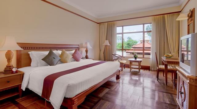 144 номера Deluxe city с видом из окна на сад и город. Номера выполнены в традиционном и современном кхмерском стиле. В номерах одна большая или две кроватями. 96 номеров Deluxe pool с видом из окна на бассейн. Эти номера выполнены в традиционном кхмерском стиле. В номерах одна большая или две кроватями. 24 номера Club Suite. Все номера сьют выполнены в традиционном кхмерском стиле. Большие, просторные, светлые и уютные комнаты сьюты. В номерах имеется большой плазменный телевизор и музыкальный центр. Несколько типов внутреннего освещения для удобства гостей которые легко регулируются. 4 номера Junior suite. Спальная комната и кухня. В номере одна большая двухместная кровать и уютная обстановка. Большое количество ценных пород древесины в декоре номера. 6 номеров Executive Suite. В которых есть спальная комната, уютная гостиная комната и кухня. На кухне стоит холодильник, микроволновая печь и тостер. Гостиная оборудована письменным столом, диваном, большим телевизором и музыкальным центром. В спальне расположена большая двухместная кровать.
