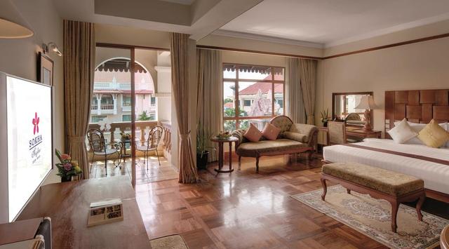 В номерах: кондиционер,кабельное ТВ,плазменный телевизор (только в номерах сьютах), широкополосный Интернет, электричество 220 Вольт, набор для приготовления чая/кофе, электронный сейф, телефон, мини-бар, фен, банный халат и тапочки, телефон в ванной комнате, балкон (во всех номерах с видом на балкон и сьютах), сауна и комната для массажа (в номере Royal Sokha Suite). Дополнительные услуги: 2 номера для людей с ограниченными физическими возможностями, салон красоты, спа-центр, бассейн (с морской водой), тренажерный зал, массажный кабинет, сауна, комната для медитации, рестораны ( восточная и европейская кухня ), бары.