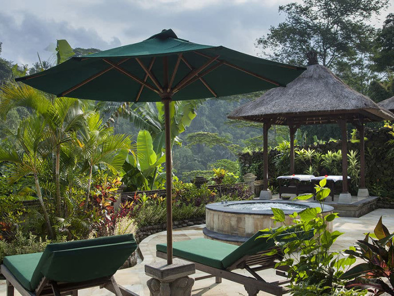 У ресторані Ayung Valley подають страви регіональної та міжнародної кухні. У лаундж-барі Dewata гостям запропонують легкі закуски та освіжаючі напої. Dewata Lounge (сучасна європейська та азіатська кухня, відкрито з 07.00 до 23.00), Ayung valley (інтернаціональна кухня, відкритий з 07.00 до 23.00), Teras Bali (балійська кухня, відкрито з 07.00 до 23.00),Ayung Organic ("органічні" страви, "здорові" ланчі та сніданки, відкритий з 07.00 до 22.00, післяобідній чай/кава з тістечками в Dewata Lounge), Dewata Lounge (відкрито з 10.00 до 00.00, цілодобове замовлення страв та напоїв у номер). Вечеря з балійськими танцювальними виставами (раз на тиждень)