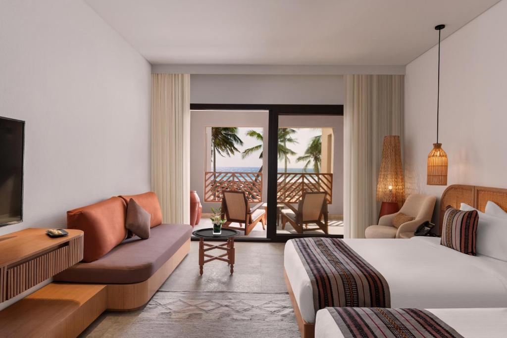 Розкішний готель в складі курорту Hawana Salalah розташований на березі моря, відображає найвищі стандарти дизайну та найсучасніші зручності. Розкіш втілена в кожній деталі, від ванних кімнат, оформлених у стилі спа-салону, до панорамних відкритих просторів, від розкішного комфорту ліжок розміру «king-size» до затишних зон відпочинку.