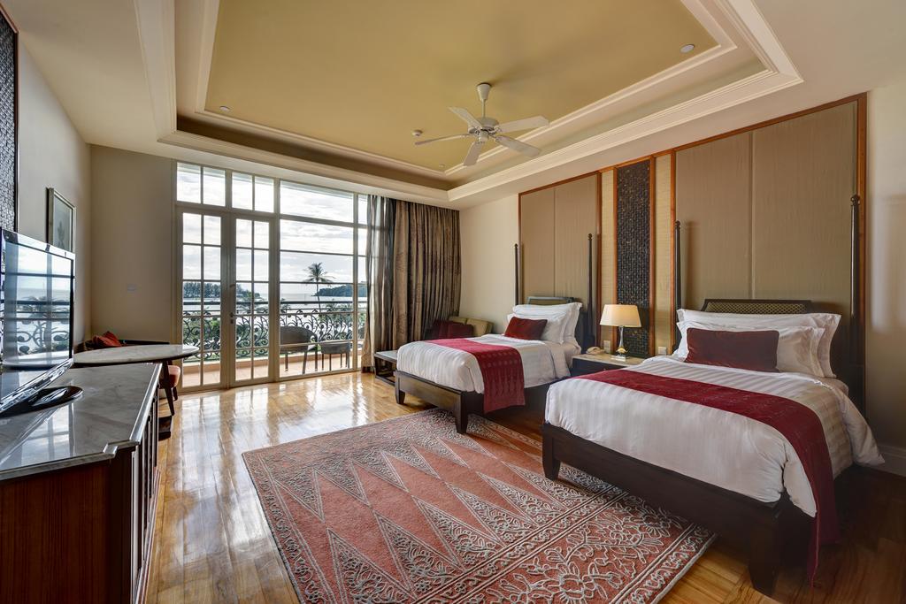 Пятиэтажное здание отеля выполнено в британском колониальном архитектурном стиле. Номера отеля оформлены с элементами местной архитектуры и роскоши и оснащены деревянной мебелью и французскими окнами. С отдельного балкона открывается вид на холмы, пристань или море. В отеле 125 номеров - стандартов, люксов и вилл. Роскошная пляжная вилла "Принцесса" (490 м²) имеет собственный пейзажный бассейн, а из собственного сада гости могут напрямую выйти на пляж; среди удобств — большая гостиная с прямым выходом к бассейну, где есть терраса с шезлонгами. В гостиной установлена домашняя развлекательная система. В каждом номере есть: кондиционер, телевизор с плоским экраном с кабельным ТВ, DVD-плеер, телефон, бесплатный доступ в Интернет, мини-бар, кофемашина Nespresso, сейф; в ванной комнате с ванной и тропическим душем есть туалетно-косметическими принадлежностями премиум-класса, полотенца, халаты, тапочки и фен. Гостям предоставляются перьевые подушки и пуховое одеяло.