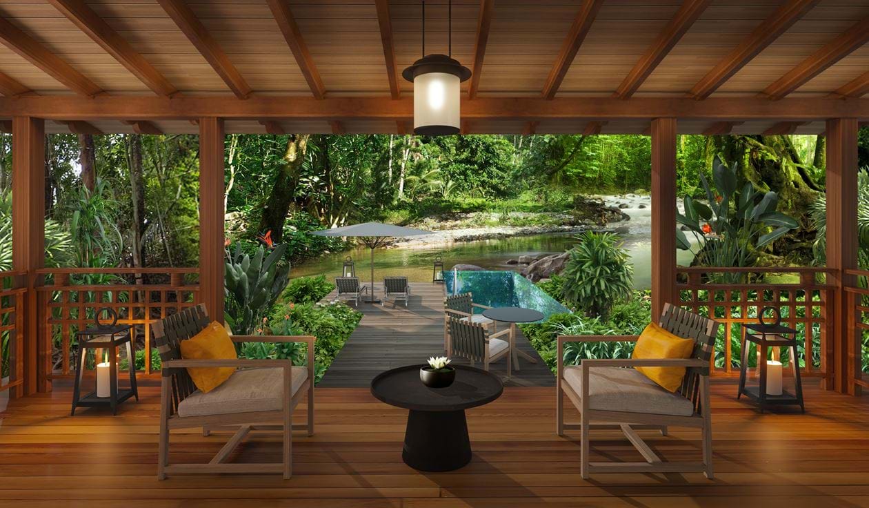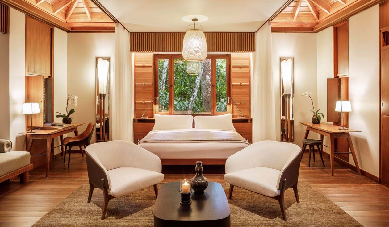 В числе удобств: большая ванная комната с ванной, душем и открытым тропическим душем, балкон или открытая терраса с шезлонгами, столиком и стульями, а также с прекрасным видом на окружающую местность, тропическую зелень или море. В каждом номере есть рабочий стол, кондиционер и плазменный телевизор со спутниковыми каналами, телефон, сейф, мини-бар, чайник и кофемашина, в ванной комнате есть полотенца, халаты, тапочки, туалетные принадлежности и фен.