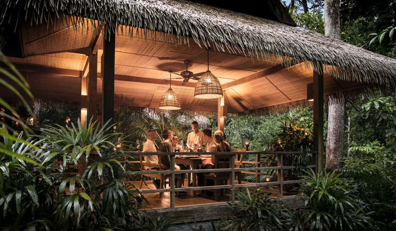 — В тропическом лесу, на удалении от главного здания отеля, работает ресторан на открытом воздухе Gulai House, который специализируется на приготолвении традиционных блюд малазийской и индийской кухни. — В ресторане Dining Room подаются популярные блюда западной и местной кухни. — Ресторан на открытом воздухе Pavilion приглашает своих гостей насладиться блюдами тайской кухни. — Пляжный кафе-бар Beach Club с панорамным видом на Адаманское море предлагает блюда средиземноморской и международной кухни. — В лобби-баре отеля можно заказать легкие закуски и освежающие напитки.