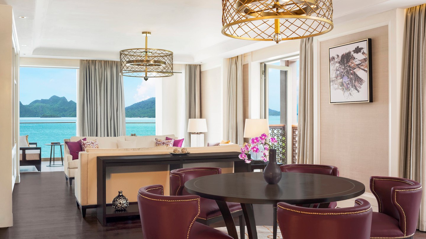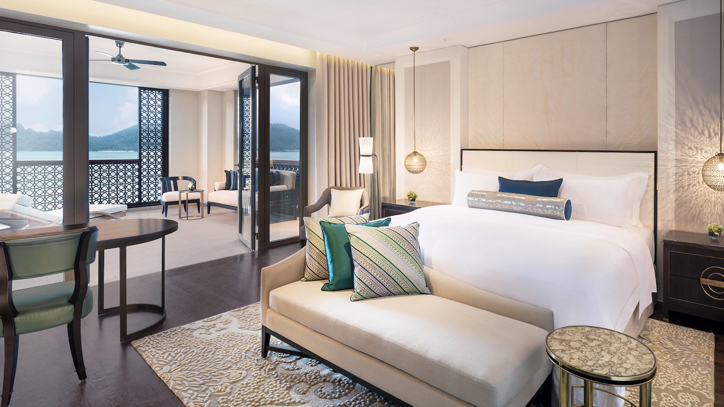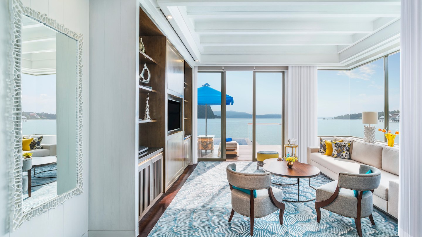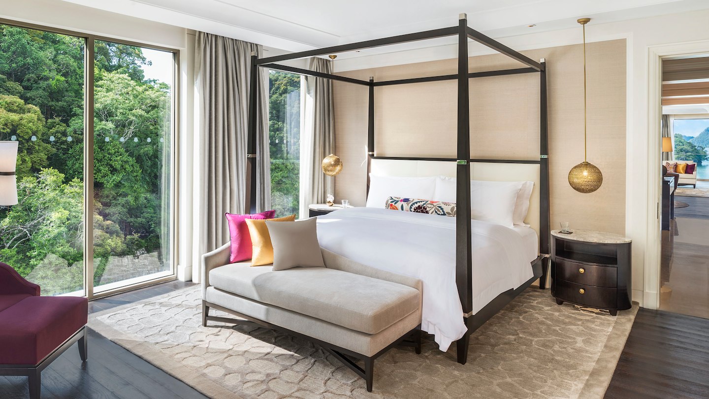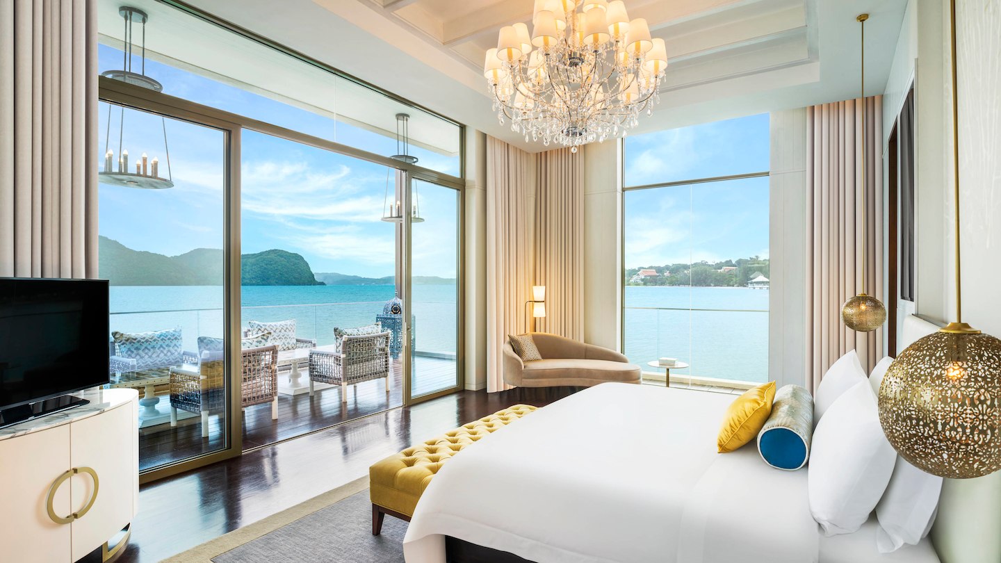 —Premier Rainforest Suite (58 м², 2 чел. в номере) — номер с видом на тропический лес. —Premier Andaman Sea Suite (62 м², 2 чел. в номере) — номер с прекрасным видом на море. —St. Regis Suite (70 м², 2 чел. в номере) — просторный номер с прекрасным видом на море. —St. Regis Pool Suite (90 м², 3 чел. в номере) — просторный номер с собственной террасой и выходом к бассейну. —Penthouse Suite (262 м², 3 чел. в номере) — большой шикарный люкс на верхнем этаже с террасой на крыше с видом на море и тропический лес, где есть мягкие диваны и обеденный стол. —Panoramic Suite (262 м², 3 чел. в номере) — большой шикарный люкс на верхнем этаже с панорамным видом на море и тропический лес, а также с просторной обеденной зоной в номере. —The Astor (262 м², 3 чел. в номере) — большой шикарный президентский люкс с обеденным столом и камином в большой гостиной, а также длинным балконом, откуда открывается потрясающий вид на море и яркий зеленый холмы. Типы вилл: —Sunset Villa (262 м², 3 чел. в номере) — большая шикарная вилла над водой с просторной гостиной, обеденной зоной и террасой с бассейном и шезлонгами. —Sunset Royal Villa (700 м², до 8 чел. в номере) — огромная роскошная вилла над водой с 4 спальнями, 2 ванными комнатами, просторным обеденным залом, гостиной с диваном-кроватью и стеклянным полом, хорошо оборудованной кухней, а также большой террасой с бассейном и шезлонгами.