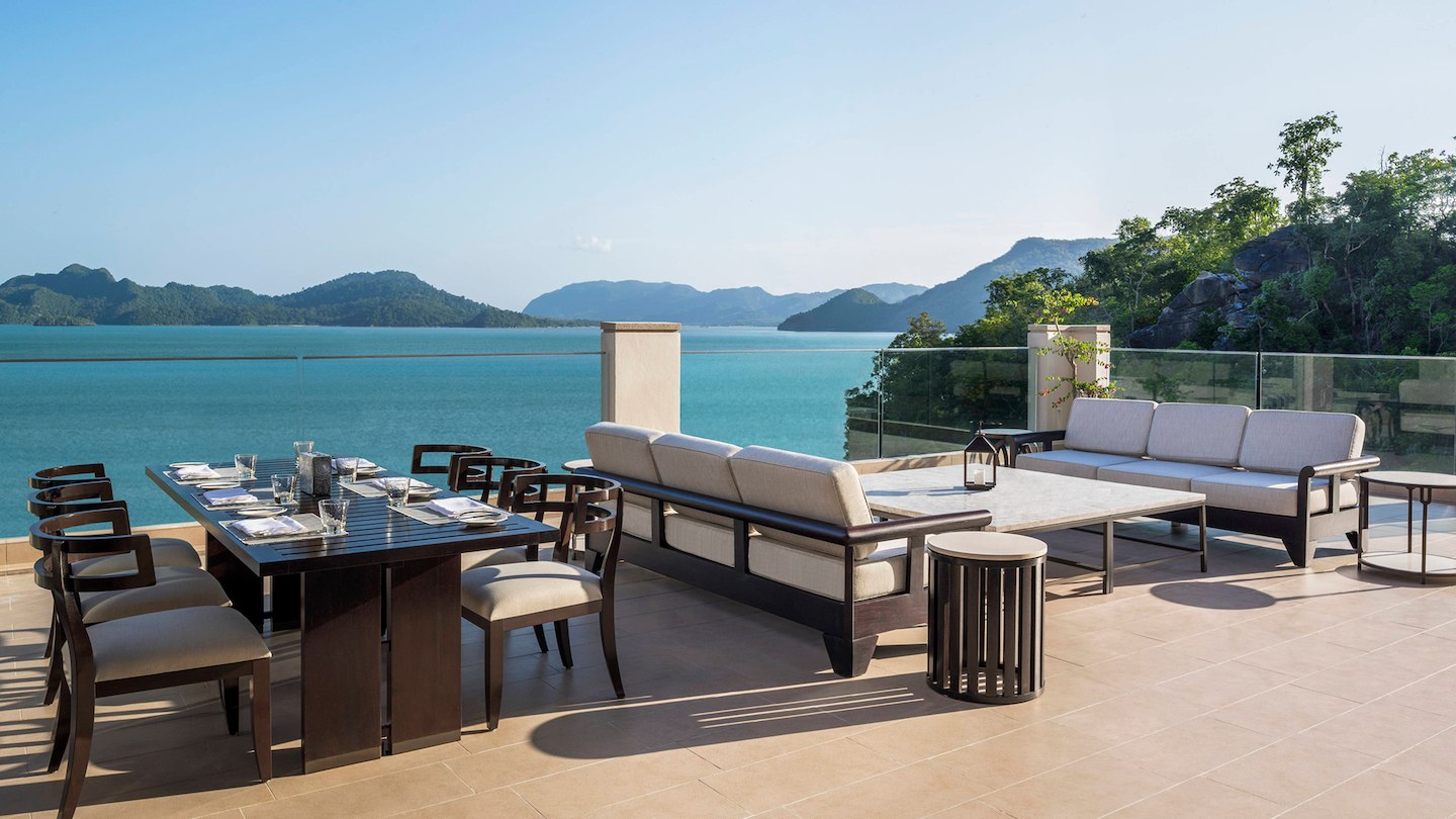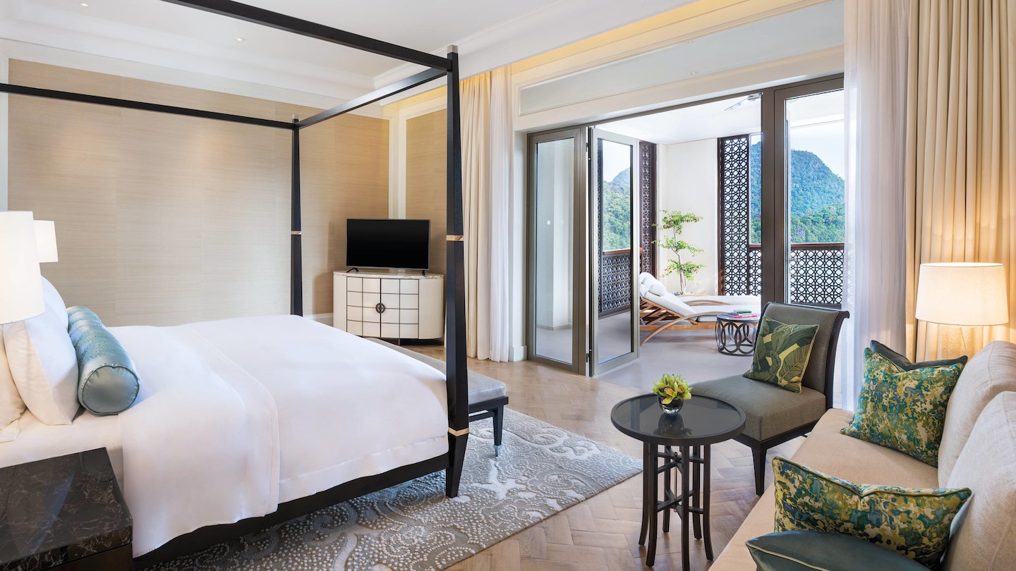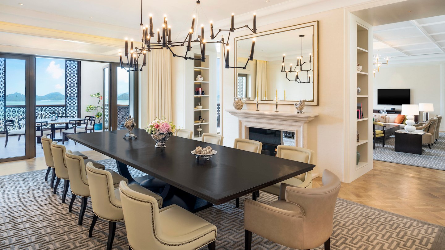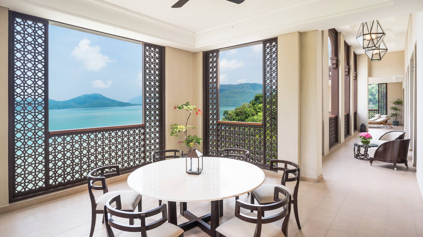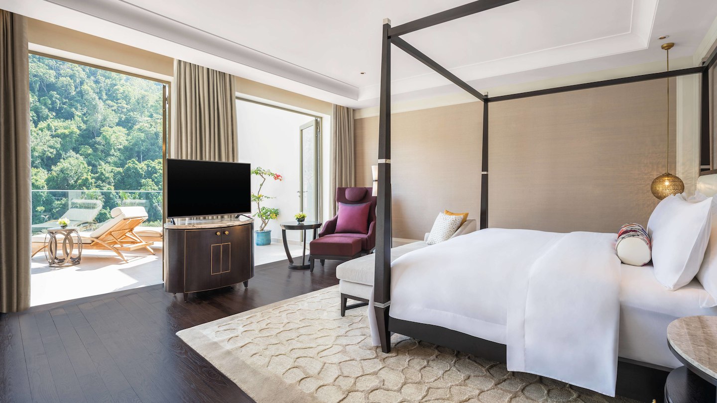 —Premier Rainforest Suite (58 м², 2 чел. в номере) — номер с видом на тропический лес. —Premier Andaman Sea Suite (62 м², 2 чел. в номере) — номер с прекрасным видом на море. —St. Regis Suite (70 м², 2 чел. в номере) — просторный номер с прекрасным видом на море. —St. Regis Pool Suite (90 м², 3 чел. в номере) — просторный номер с собственной террасой и выходом к бассейну. —Penthouse Suite (262 м², 3 чел. в номере) — большой шикарный люкс на верхнем этаже с террасой на крыше с видом на море и тропический лес, где есть мягкие диваны и обеденный стол. —Panoramic Suite (262 м², 3 чел. в номере) — большой шикарный люкс на верхнем этаже с панорамным видом на море и тропический лес, а также с просторной обеденной зоной в номере. —The Astor (262 м², 3 чел. в номере) — большой шикарный президентский люкс с обеденным столом и камином в большой гостиной, а также длинным балконом, откуда открывается потрясающий вид на море и яркий зеленый холмы. Типы вилл: —Sunset Villa (262 м², 3 чел. в номере) — большая шикарная вилла над водой с просторной гостиной, обеденной зоной и террасой с бассейном и шезлонгами. —Sunset Royal Villa (700 м², до 8 чел. в номере) — огромная роскошная вилла над водой с 4 спальнями, 2 ванными комнатами, просторным обеденным залом, гостиной с диваном-кроватью и стеклянным полом, хорошо оборудованной кухней, а также большой террасой с бассейном и шезлонгами.