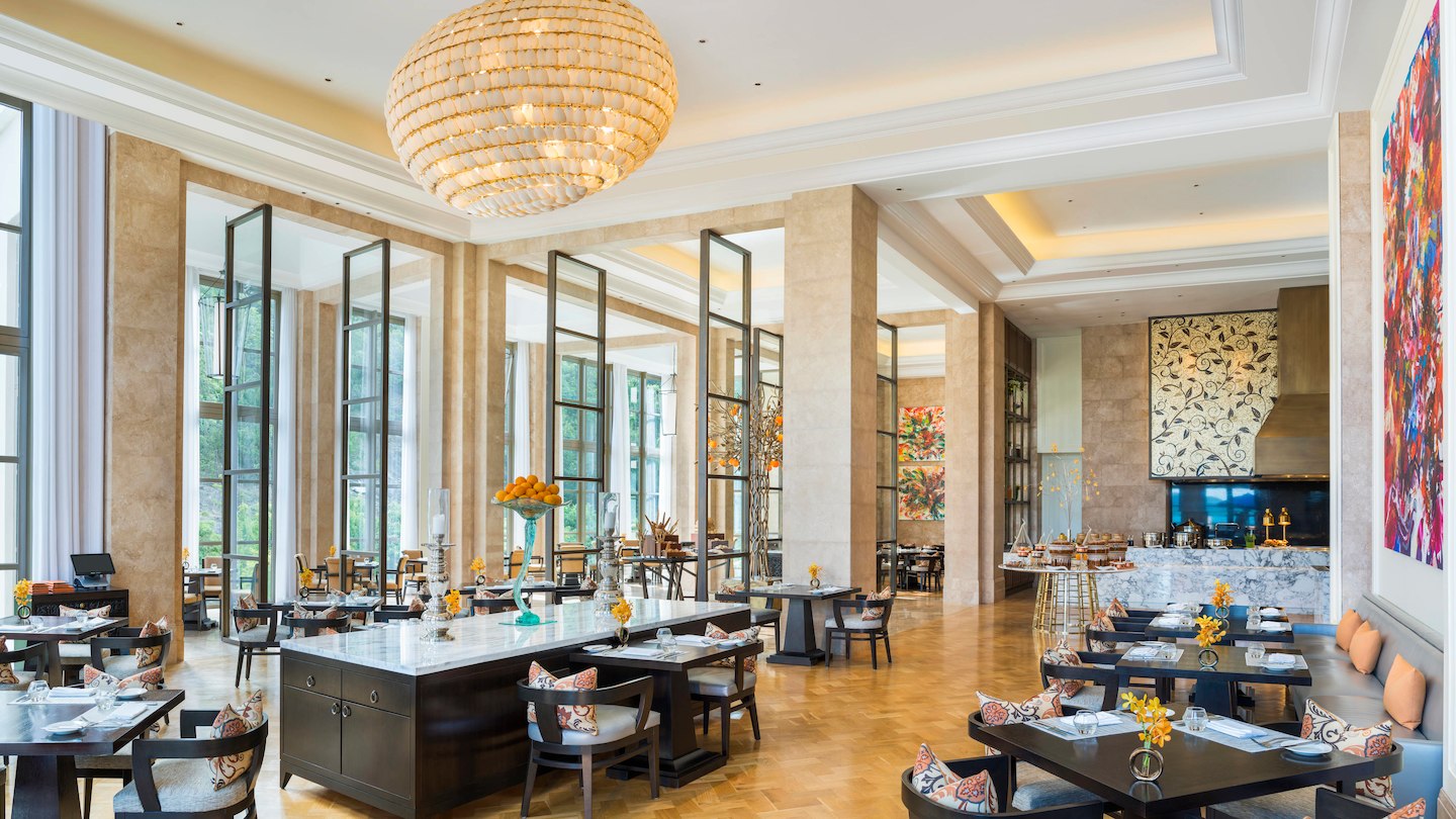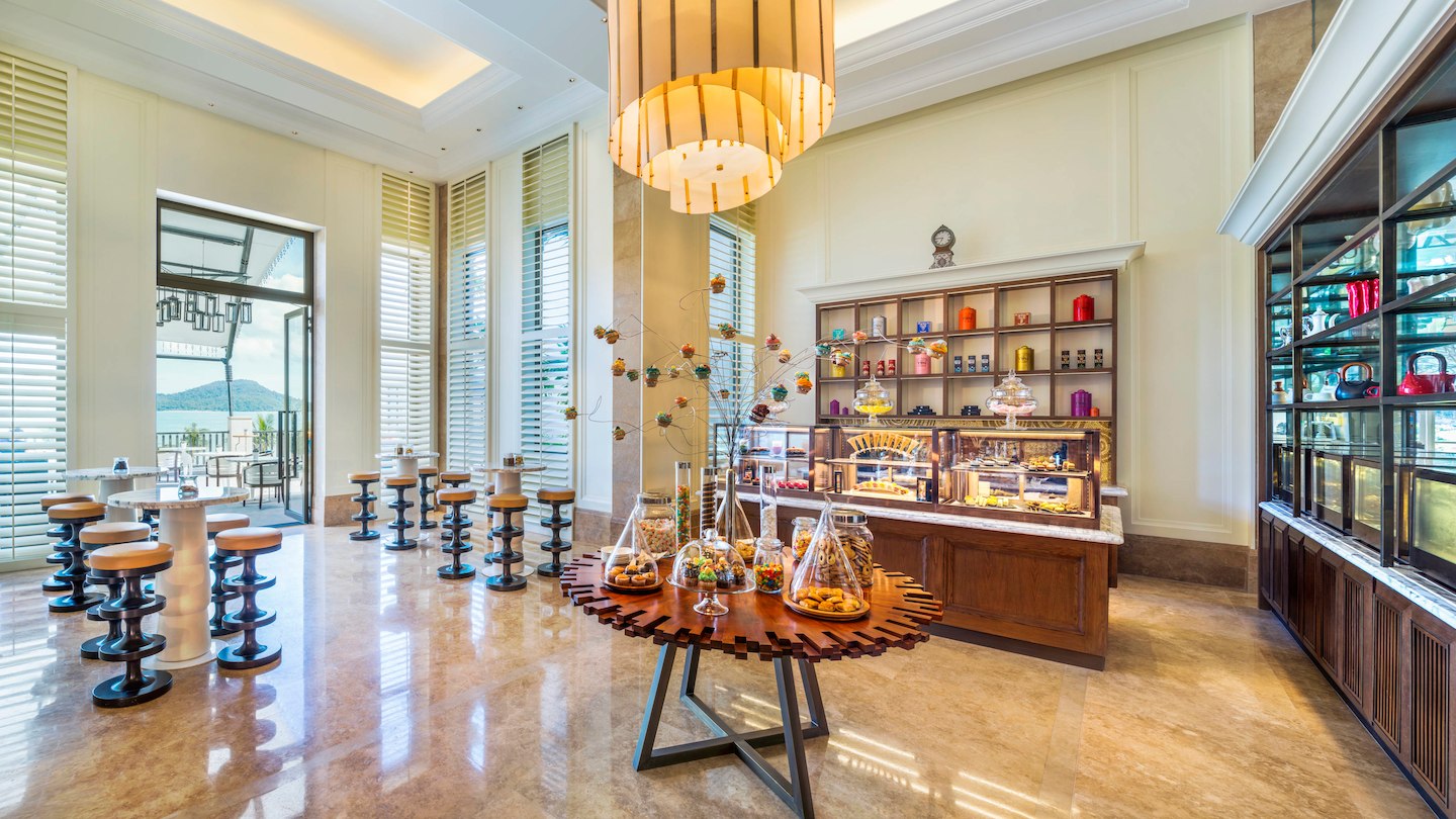 На территории отеля есть 4 ресторана, 2 бара и кафе: — ресторан L’Orangerie с открытой кухней предлагает гостям с 7 утра до 11 вечера ароматно приготовленные блюда международной кухни; на завтрак здесь сервируется «шведский стол»; —в ресторане над водой Kayu Puti можно попробовать профессионально приготовленные азиатские блюда кухни фьюжин, а также насладиться замечательным видом на Андаманское море; —расположенный среди тропической зелени ресторан Pantai Grill удивит вас свежими морепродуктами и сочными стейками, приготовленными на гриле; — кафе-ресторан Gourmand Deli предлагает отведать экзотические блюда индийской кухни; —в кафе The Drawing Room Lounge гостям предложат выпечку и ароматный кофе; —бар The St. Regis Bar приглашает гостей расслабиться за бокалом любимого напитка или коктейля; —оформленный в английском стиле бар Decanter Wine Bar предлагает широкий выбор вин и различных напитков.