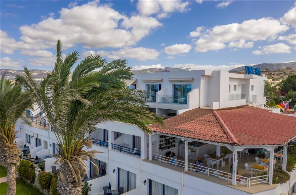 Нещодавно відреставрований курорт Vrachia Beach Resort побудований у чудовому місці на власному півострові, у великому місці між Пафосом і знаменитим Коралловим заливом, одним із найвідоміших пляжів у місті. Рядом із деревною Кіссонерга та приблизно в 8 км від центру міста та мальовничої гавані Пафоса курорт Врачія пропонує спокій і комфорт, де ви відчуєте себе як вдома. Цей пляжний курорт із видом на Середземне море та відкритим басейном розташований посеред пишних садів на частковому півострові. Центр Пафоса знаходиться в 10 хвилинах їзди від курортного готелю Vrachia Beach.