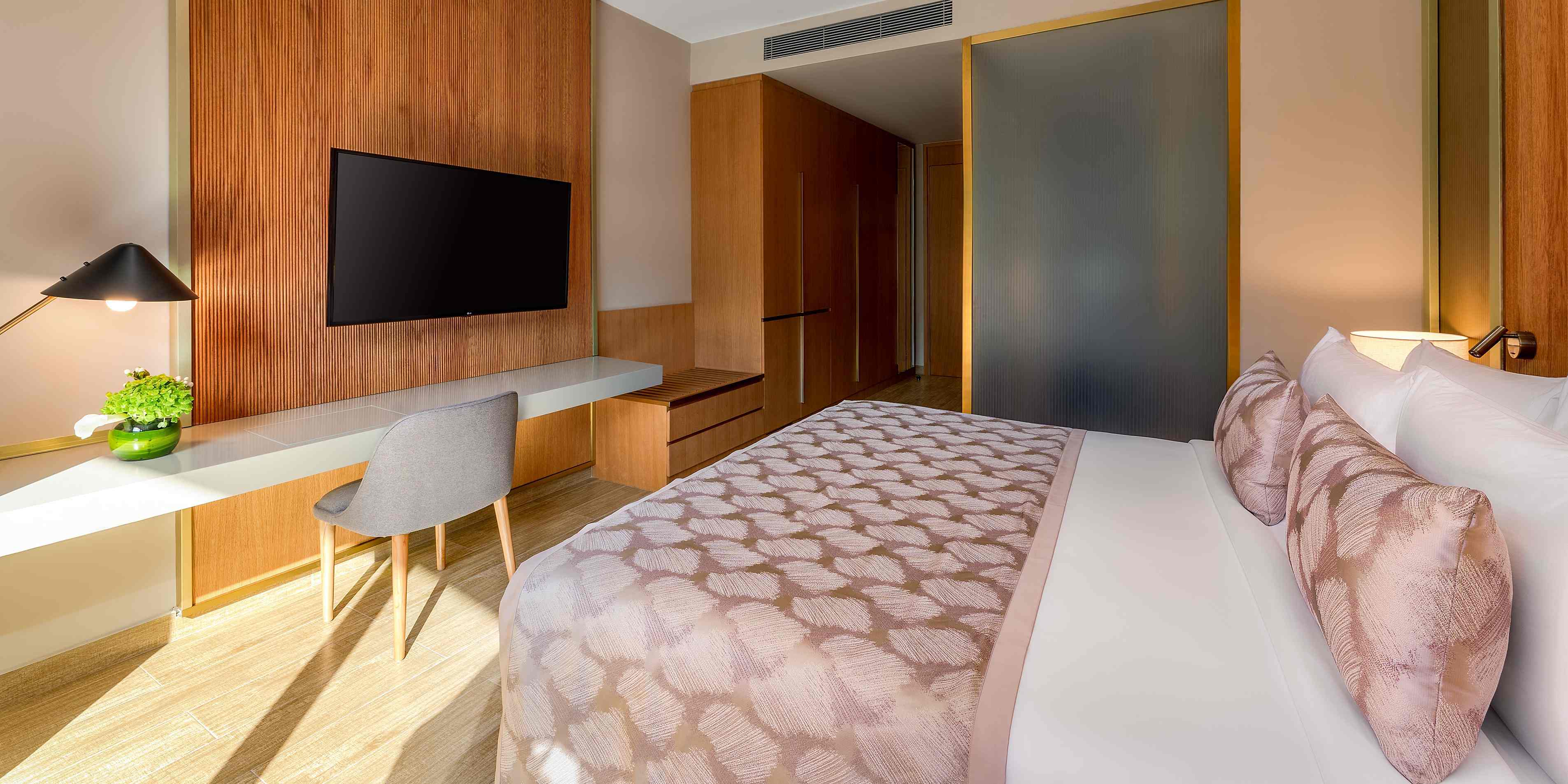 Deluxe Room- 33 м², просторий двомісний номер з кондиціонером, телевізором з плоским екраном і потоковими послугами, міні-баром, усім необхідним для приготування чаю та кави, шафою для одягу, а також видом на внутрішній дворик. Premium Room- 36 м²,просторий двомісний номер з кондиціонером, міні-баром, балконом з видом на басейн, а також власною ванною кімнатою з душовою кабіною. Є номери з видом на Raining Street, басейн, або море. Monaco Suite- 144 м², гості отримають особливі враження від люкса з видом на басейн. Цей просторий люкс складається з 1 спальні, зони відпочинку та 1 ванної кімнати з душовою кабіною і ванною. Люкс оснащений кондиціонером, телевізором з плоским екраном і потоковими каналами, міні-баром, усім необхідним для приготування чаю та кави, шафою для одягу, а також видом на море.