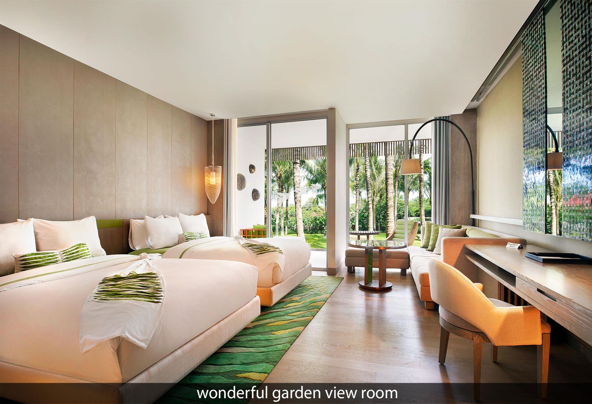 Готель складається з 229 номерів, розташованих в основному 5-поверховому корпусі і вілл, що окремо стоять. 75 Wonderful Garden View Escape (вид на сад, двоспальне або 2 односпальні ліжка, макс. 3 чол., 64 м2); 76 Spectacular Ocean Facing Escape (вид на море, двоспальне або 2 односпальні ліжка, макс. 3 чол., 64 м2); 58 Marvelous One Bedroom Pool Villa (спальня, двоспальне ліжко, зона для відпочинку на відкритому повітрі, садок, приватний басейн 24 м2, макс. 3 чол., 225 м2); 10 WOW Two Bedroom Villa (2 спальні (двоспальне та 2 односпальні ліжка), їдальня та зона для відпочинку на відкритому повітрі, сад, приватний басейн 42 м2, макс. 5 чол., 352 м2). У номерах халат, міні-бар платно, кондиціонер: є, CD/DVD-програвач, фен: є, ваги, набір для приготування чаю/кави, сейф: у номері, безкоштовно, прибирання номера: на запит, телевізор: є, Інтернет: Wi-Fi, безкоштовно, балкон або тераса, ванна та душ, телефон, room service: є, капці, підлога: паркет, акустична система BOSE.