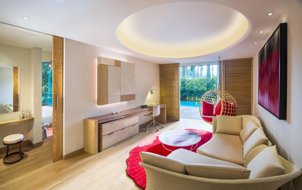 В отеле 240 номеров различных категорий, включая Guest Room и Suite. Номера восхищают ультрасовременным комфортом и оригинальным современным дизайном, дополненным изящными элементами декора в азиатском стиле и изысканным деталями в флористической тематике. С балконов и из панорамных, во всю стену окон номеров открывается захватывающий вид на остров, пристань и сверкающую гладь Южно-Китайского моря. В каждом номере: - кондиционер, - декоративная подсветка, - радиотелефон, - телевизор LED, - DVD player, - аудиосистема Bose, - док-станция iPOD, - бесплатный доступ в Интернет, - сейф, - мини-бар, - Munchie Box с закусками, - набор для приготовления чая и кофе, - включая френч-пресс, - утюг и гладильная доска, - в ванной комнате – ванна, душевая кабина, фен, халаты. Типи номеров: Wonderful Room: 40 м2. Номер с видом на ландшафты острова и пристань, состоит из спальни с кроватью king-size и зоной отдыха, ванной комнаты. Spectacular Room: 40 м2. Состоит из спальни с кроватью king-size и зоной отдыха, ванной комнаты, террасы с видом на остров и море. Fabulous Room: 40 м2. Состоит из спальни с кроватью king-size и зоной отдыха, ванной комнаты, балкона с видом на бассейн и море. Away Room: 37 м2. Состоит из спальни с кроватью king-size и зоной отдыха, ванной комнаты, террасы с небольшим бассейном и видом на море и бассейн. Away Suite: 41 м2. Состоит из спальни с кроватью king-size, гостиной с большим диваном, ванной комнаты с джакузи и душевой кабиной, гостевой туалетной комнаты, террасы с небольшим бассейном, зоной отдыха с диваном и видом на море и бассейн. Marvelous Suite: угловой номер, состоит из гостиной, спальни с кроватью king-size, ванной комнаты с джакузи и душевой кабиной, гостевой туалетной комнаты, большой L образной террасы с зоной отдыха и видом на море, пристань и бассейн. WOW Suite: 75 м2. Шикарный угловой номер, состоит из просторной гостиной, обеденной зоны на 6 персон, буфетной с барной стойкой, спальни с кроватью king-size, ванной комнаты с прямоугольной джакузи и душевой кабиной, гостевой туалетной комнаты, 2 террас с бассейном, зоной отдыха и видом на море, пристань и бассейн. Extreme WOW Suite: 195 м2. Фешенебельный угловой номер, состоит из холла, просторной гостиной, обеденной зоны на 8 персон, кухни с барной стойкой, 2 спален с кроватью king-size, ванной комнаты с овальной джакузи и душевой кабиной, гостевой ванной комнаты, большой террасы с бассейном, музыкальным центром, зоной отдыха и великолепным видом на море.