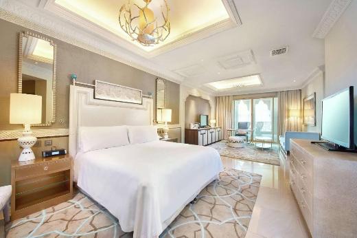 Ocean View Junior Suite (84 кв. м)- відчуйте неперевершену розкіш із захоплюючим видом на Перську затоку з приватного балкона цього чудово оформленого люкса. Побалуйте себе комфортом королівського ліжка в елегантній спальні та розслабтеся у вітальні з диваном-ліжком. Насолоджуйтесь улюбленими серіалами та фільмами на двох 55-дюймових LED-телевізорах. Оздоблена чистим мармуром ванна кімната з ванною та окремим тропічним душем запрошує вас розслабитися. Відкрийте для себе розкіш просторої гардеробної кімнати та ексклюзивного міні-бару. Дозвольте нашим уважним консьєржам підняти ваше перебування на неперевершений рівень розкоші.