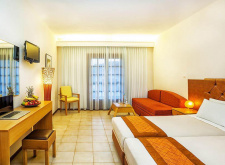 Всього в готелі 71 номер: Eco Room - 22-29 кв.м (макс. 3), розташовані на рівні землі, без балкона та виду. Eco Family Room - 29-35 кв.м (макс. 4+1), нещодавно відремонтовані, розташовані на рівні землі, без балкона або виду і складаються зі спальні та зони вітальні з двома диван-ліжками з перегородкою. Standard Room Garden View – 22-29 кв.м (макс.3). Standard Room Pool View – 22-29 кв.м (макс.3). Standard Room Sea View – 22-29 кв.м (макс.3) Superior Room Garden View - 22-29 кв.м (макс.4), спальня відкритого планування з 4 спальними місцями Family Room One Bedroom Garden View – 60 кв.м (макс. 4+1), одна спальня з двоспальним ліжком та одна спальня з 2 окремими ліжками та диван-ліжком, 1 ванна кімната Junior Suite One Bedroom Garden View - 52 кв.м (макс.4), спальня та зона вітальні відкритого планування з двома диван-ліжками Family Suite Two Bedrooms Sea View - 76 кв.м (макс. 4+1), спальня з двоспальним ліжком, спальня з двома окремими ліжками та зона вітальні У номерах: Кондиціонер. Балкон або тераса (крім Eco номерів). Wi-Fi інтернет (безкоштовно). Ванна кімната. Міні холодильник. Телевізор із супутниковими каналами. Телефон. Сейф. Фен