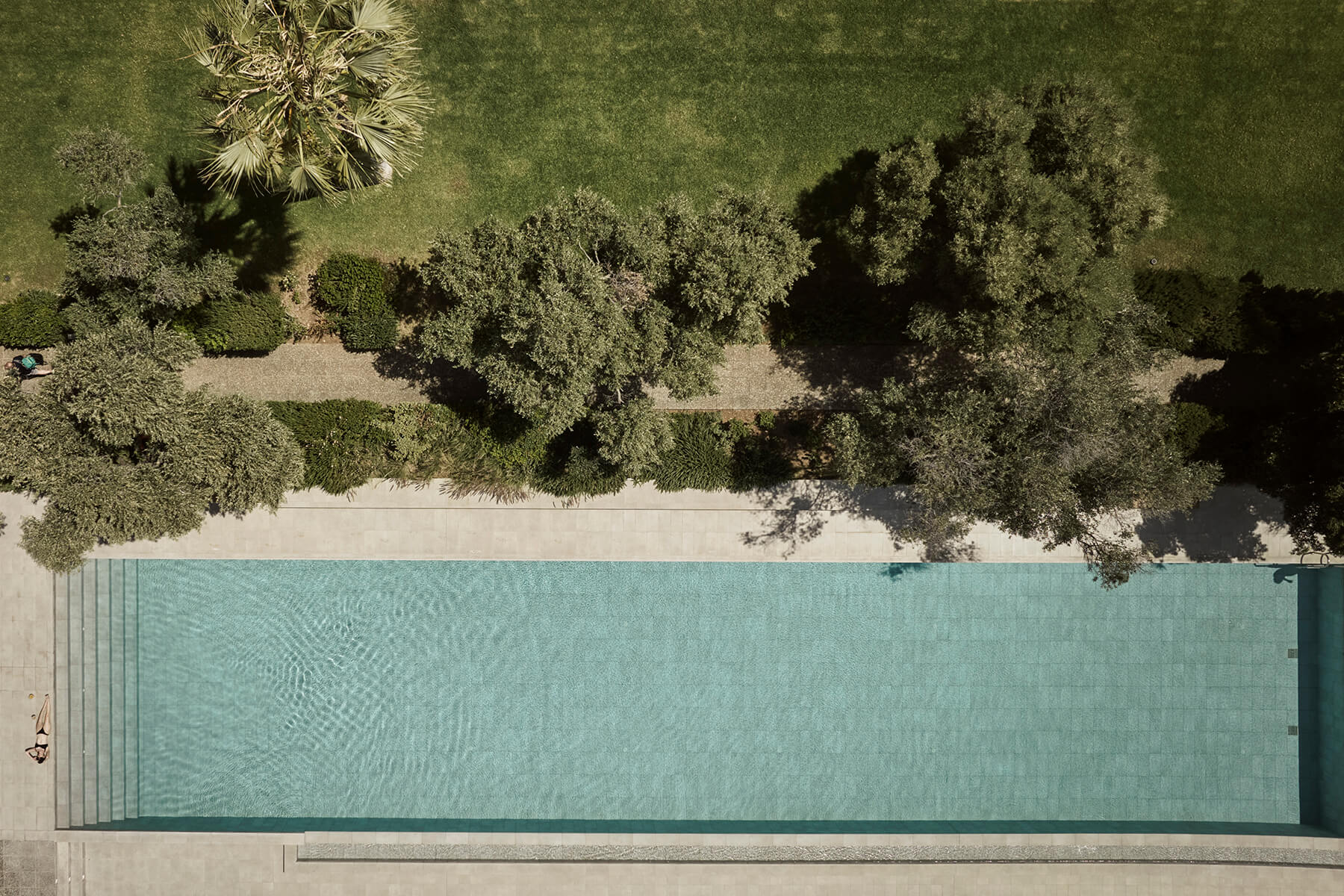 5 басейнів з прісною водою: Відкритий басейн Eauzone: (23,5 х 5 м, глибина 1,5 м); працює: 08:00-20:00; температура від 16-26°C (зима-літо); без дітей до 16 років. Закритий басейн Almyraspa: (9,7 х 5 м, глибина 1,3 м); працює: 08:00-20:00; температура від 28-30°C (з листопада по травень); Без дітей до 16 років. Infinity Pool: (33 х 7 м, глибина 1,4 м); відкрито: Схід-Захід; температура від 16-26°C (зима-літо); діти повинні бути під наглядом весь час; одинарної глибини, тому не підходить для дуже маленьких дітей. басейн Almyra: (11 х 21,5 м, глибина 0,5 – 1,6 м); відкрито: Схід-Захід; температура від 16-26°C (зима-літо); діти повинні постійно перебувати під наглядом. Дитячий басейн: (4,5 х 4,5 м, глибина 0,5 м); відкрито: Схід-Захід; температура від 16-26°C (зима-літо); діти повинні постійно перебувати під наглядом. Шезлонги та рушники в наявності