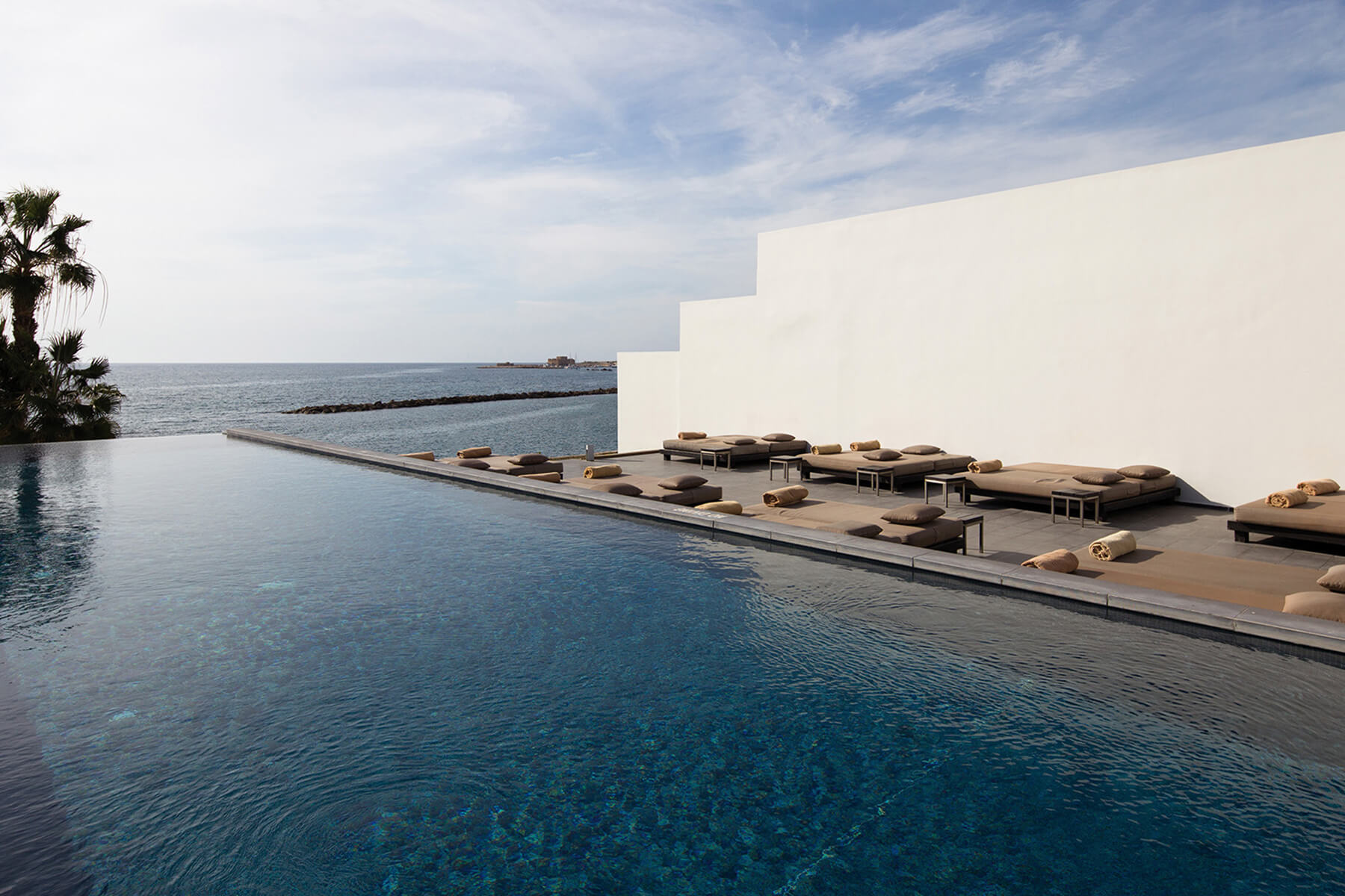 Готель Almyra розташований посеред тропічних садів із видом на Середземне море, лише за 5 хвилин ходьби від гавані Пафосу. У готелю зелена територія площею три гектари, 187 номерів, оформлених у сучасному мінімалістичному стилі, а також розташовані прямо на березі сьюти з власними терасами на дахах. У лютому 2020 року в готелі завершилася реновація, під час якої було повністю оновлено номерний фонд. До послуг гостей номери з безкоштовним Wi-Fi, 5 басейнів з прісною водою, 5 ресторанів і барів, а також спа-центр. Просторі номери готелю Almyra оснащені кондиціонером, вікнами від підлоги до стелі, балконами або терасами з видом на сад або Середземне море. У номерах є супутникове телебачення, міні-бар і сейф. Спа-центр готелю пропонує цілісні процедури та масаж, а також сауну та тренажерний зал. Аеропорт Пафоса: 15 км Аеропорт Ларнака: 120 км)