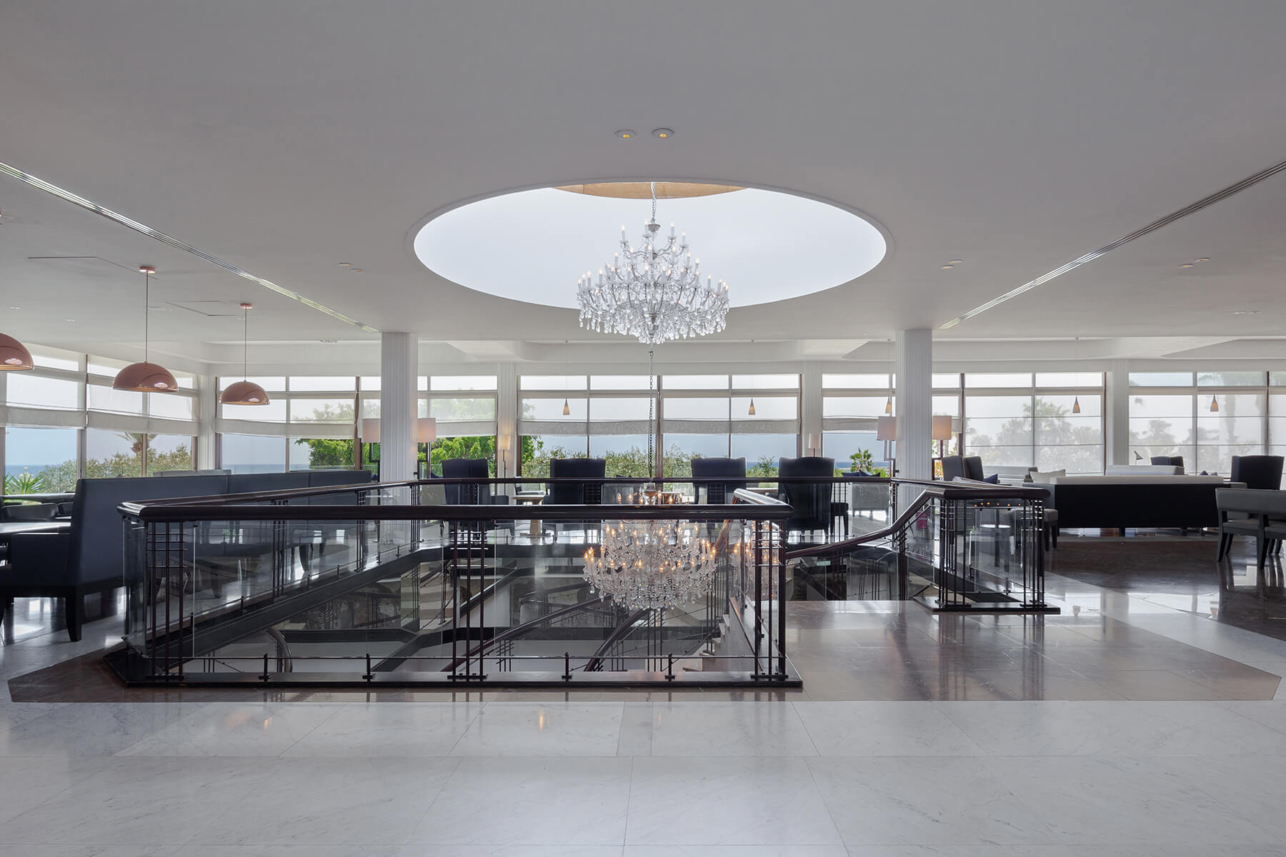 Notios (японсько-середземноморська кухня ф’южн на свіжому повітрі) Mosaics (шведський стіл і сніданок по меню) Ouzeri (фірмові страви Кіпру, на свіжому повітрі) Eauzone (Spa ресторан) Aeras (японсько-середземноморський фьюжн) Helios Lounge Bar