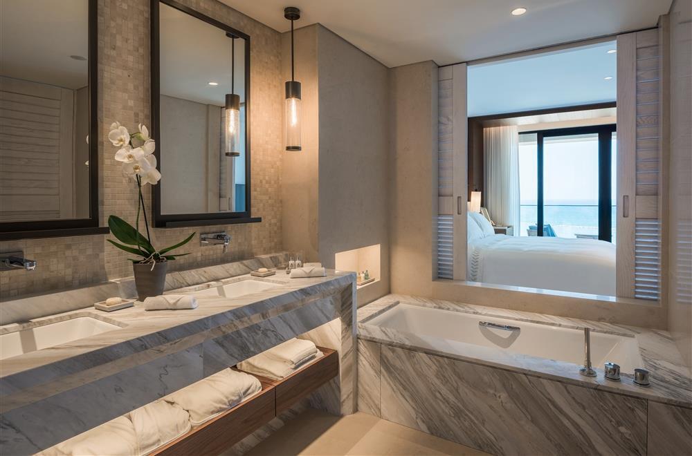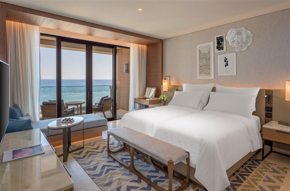 Deluxe Bedroom Sea View – 45 кв.м. (макс. 2+1): номер з ліжком розміру "queen-size" або "king-size", мармурова ванна кімната з подвійною раковиною, велика ванна та окремий душ