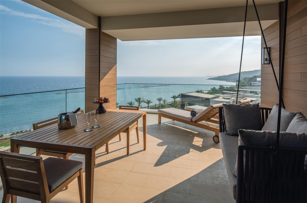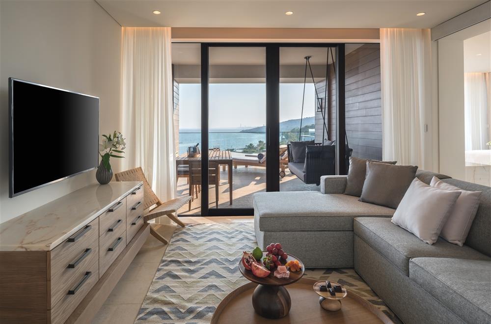 Deluxe Suite Two Bedrooms Sea View – 135 кв.м. (макс. 4+2): 2 спальні з ліжками Queen або King-size, вітальня, мармурова ванна кімната Roof Top Sea View Private Pool - 110 кв.м. (макс. 2): номер для дорослих, дворівневий, спальня з ліжком розміру "queen-size" або "king-size", простора ванна кімната з подвійною раковиною, окрема душова кабіна, вітальня, кухня та батлер (за запитом), приватний басейн