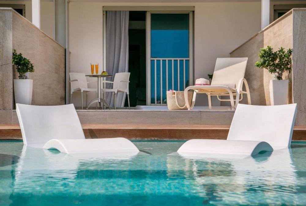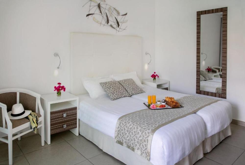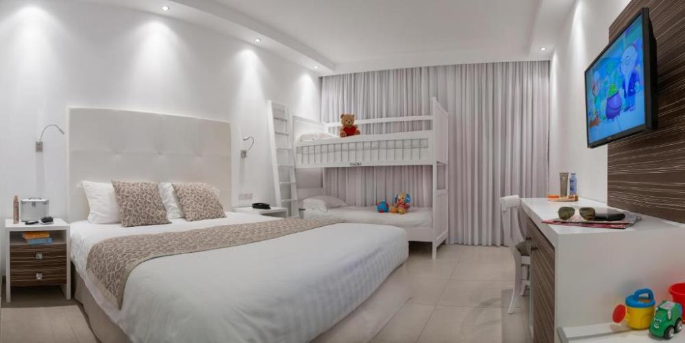 Garden, Side Sea, Sea, Pool View Room Площа: 23,4 кв Вміщує: до 3 осіб Ці стильно оформлені та оснащені всіма зручностями номери з видом на квітучі сади, бокове море, вид на море та басейн готелю ідеально підходять для насолоди відпусткою, відпочинку в стильній обстановці. У цих повністю обладнаних номерах з усіма зручностями гості будуть проводити багато часу на балконі. Superior Front Sea View Площа: 23,4 кв Вміщує: до 3 осіб Додаткові зручності: кавова машина Nespresso Землисті відтінки, кольори білого та блакитного, дерев'яні деталі, зручне ліжко та велика душова кабіна, оздоблена білим мармуром, створюють прекрасну обстановку та доповнять перебування в готелі незабутнім. Family Room Площа: 23,4 кв Розрахований на розміщення: до 2 дорослих і 2 дітей Сімейний відпочинок гостей буде кращим із перебуванням у сімейних номерах готелю. Розроблені спеціально для задоволення потреб сім’ї з чотирьох осіб (2 дорослих і 2 дітей), ці номери пропонують комфорт, щоб вони почувалися як удома! Junior Suite Площа: 27,23 кв Розміщує: 2 дорослих та 2 дітей Люкси, оформлені у відтінках синього, білого та землистих кольорів, мають кімнату та власну вітальню, пропонуючи всі зручності, які можуть знадобитися гостям, щоб насолоджуватися відпусткою. На приватній терасі джакузі подарує незабутні спогади. Мінімальне розміщення - двоє дорослих, максимальне розміщення - чотири особи, включаючи немовлят (двоє дорослих + двоє дітей або троє дорослих + одна дитина). Напівлюкс ідеально підходить для пар і сімей.