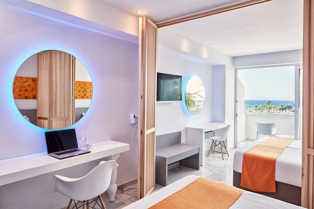 Double Room Ground Floor Цей тип номерів пропонує сучасну атмосферу та може вмістити до 3 осіб. Пропонуючи все необхідне, як міні-холодильник, телевізор, безкоштовний Wi-Fi і кондиціонер для вашого комфорту. Twin Room Inland View Кожен із них оформлений у сучасному стилі та оснащений двома односпальними або двоспальними ліжками та односпальним ліжком, де можуть розміститися до 3 осіб. Пропонуючи все необхідне, як міні-холодильник, телевізор, безкоштовний Wi-Fi і кондиціонер для вашого комфорту. Twin Room Side Sea View Кожен із них має сучасний стиль і оснащено двома односпальними або двоспальними ліжками та постійним ліжком, на якому можуть розміститися до 3 осіб, з балконом. До послуг гостей усі необхідні зручності, як-от міні-холодильник, телевізор, безкоштовний Wi-Fi та кондиціонер для вашого комфорту. Twin Room Sea View Кожен із них має сучасний стиль і оснащено двома односпальними або двоспальними ліжками, а також односпальним ліжком, де можуть розміститися до 3 осіб. Для вашого комфорту є міні-холодильник, телевізор, безкоштовний Wi-Fi і кондиціонер. Superior Double Room Inland View Кожен із них оформлений у сучасному стилі та оснащений двома односпальними або двоспальними ліжками, на яких можуть розміститися до 3 осіб. Пропонуючи все необхідне, як міні-холодильник, телевізор, безкоштовний Wi-Fi і кондиціонер для вашого комфорту. Superior Double Room Side Sea View Кожен із них оформлений у сучасному стилі та оснащений двома односпальними або двоспальними ліжками, на яких можуть розміститися до 3 осіб. Пропонуючи все необхідне, як міні-холодильник, телевізор, безкоштовний Wi-Fi і кондиціонер для вашого комфорту. Twin Premium Room Inland View Кожен із них оформлений у сучасному стилі та оснащений двома односпальними ліжками та кріслом, яке стає ліжком, де можуть розміститися до 3 осіб. Пропонуючи все необхідне, як міні-холодильник, телевізор, безкоштовний Wi-Fi і кондиціонер для вашого комфорту. Twin Premium Room Side Seа View Кожен із них оформлений у сучасному стилі та оснащений двома односпальними ліжками та кріслом, яке стає ліжком, де можуть розміститися до 3 осіб. Пропонуючи все необхідне, як міні-холодильник, телевізор, безкоштовний Wi-Fi і кондиціонер для вашого комфорту. Twin Premium Room Sea View Кожен із них оформлений у сучасному стилі та оснащений двома односпальними ліжками та кріслом, яке стає ліжком, де можуть розміститися до 3 осіб. Пропонуючи все необхідне, як міні-холодильник, телевізор, безкоштовний Wi-Fi і кондиціонер для вашого комфорту. Bungalow Garden View Кожен із них оформлений у сучасному стилі та оснащений двоспальним ліжком і диваном-ліжком, на якому можуть розміститися до 3 осіб. Пропонуючи все необхідне, як міні-холодильник, телевізор, безкоштовний Wi-Fi і кондиціонер для вашого комфорту. Family Room Сімейні номери оформлені в сучасному стилі та оснащені двоспальним та односпальним ліжком, на яких можуть розміститися до 4 осіб. Для вашого комфорту є міні-холодильник, телевізор, безкоштовний Wi-Fi і кондиціонер. Family Room Sliding Door Сімейні номери оформлені в сучасному стилі та оснащені двоспальним ліжком і двома односпальними ліжками, на яких можуть розміститися до 4 осіб. Пропонуючи все необхідне, як міні-холодильник, телевізор, безкоштовний Wi-Fi і кондиціонер для вашого комфорту. Family Room Sliding Door Pool View Сімейні номери оформлені в сучасному стилі та оснащені двоспальним ліжком і двома односпальними ліжками, на яких можуть розміститися до 4 осіб. Пропо