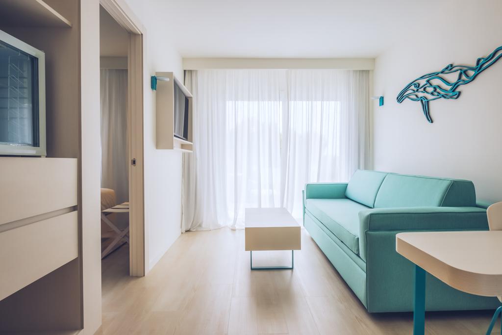 Двомісні та сімейні номери з видом на море, басейн або сади готелю були відремонтовані спеціально для вас: сучасні студії та апартаменти з вітальнею-спальнею, ванною кімнатою з душем, феном, прямим телефоном, супутниковим або кабельним телебаченням, центральним опаленням, кондиціонером, кухня з холодильником і сейфом (платно).