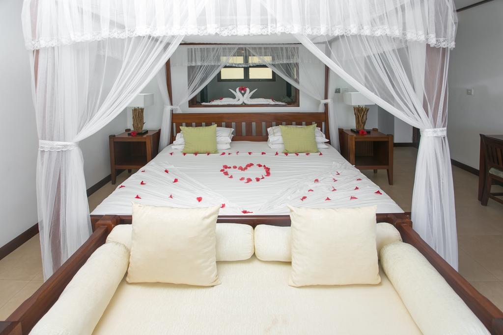 Beach Front Deluxe Rooms. Просторі вілли на першій береговій лінії з видом на море. Спальня (двоспальне ліжко розміру «кінг» або 2 ліжка «твін») з вітальнею, простора ванна кімната з ванною і душем.