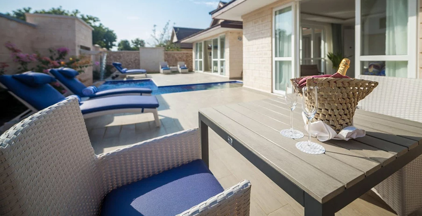 DELUXE TERRACE Номери Делюкс із терасою розташовані на першому поверсі з невеликими внутрішніми двориками та шезлонгами та пропонують більші вітальні та виразні меблі та декор. Усі номери оснащені супутниковим телебаченням, письмовим столом і великими розсувними вікнами, що ведуть у патіо. У ванних кімнатах є екологічно чисті тропічні, ручні та арабські душі. SUPERIOR BALCONY Покращені номери з балконом розташовані на верхньому поверсі та мають приватні балкони з прекрасним видом на територію. У всіх номерах є супутникове телебачення, письмовий стіл і великі розсувні вікна. У ванних кімнатах є екологічно чисті тропічні, ручні та арабські душі.