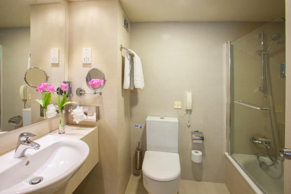 Twin/Double Room - Inland View Or Sea View - з видом на суходіл або з видом на море Розміщення: до 3 осіб Ліжка: 1 двоспальне ліжко розміру "queen-size" або 2 односпальні ліжка Розмір: 26 м² Номери з видом на суходіл з видом на місто Пафос та прекрасні гори навколо або номери з видом на море з панорамним видом на Середземне море, басейн та сади. Ці номери з двома окремими ліжками пропонують комфортний простір та стильний декор із сірими меблями. Усі номери мають мармурову підлогу та власний балкон. Насолоджуйтесь безкоштовними засобами для приготування кави та чаю в розслаблюючій атмосфері.