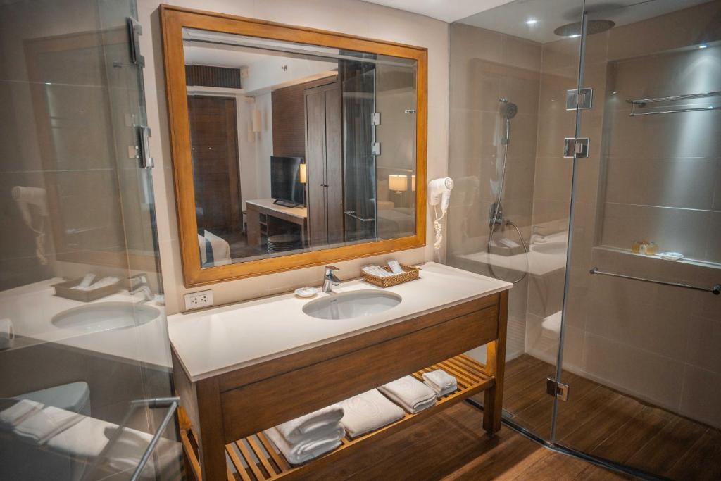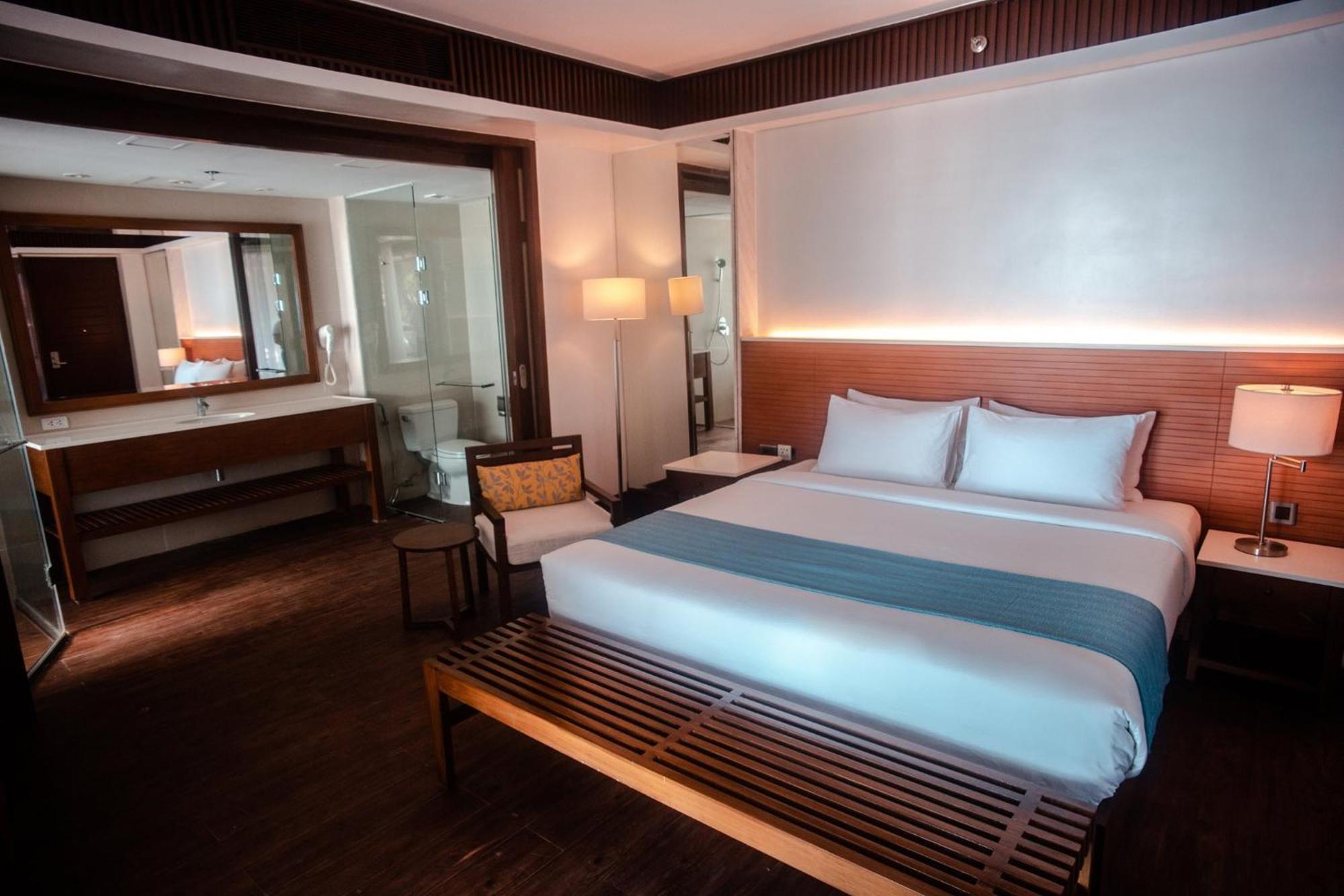 Deluxe King Room 25 m, 1 Ліжко King-size. Двомісний номер з безкоштовними туалетно-косметичними засобами, халатами та окремою ванною кімнатою з душем, біде і феном. У просторому двомісному номері є кондиціонер, шафа для одягу, сейф, електрочайник