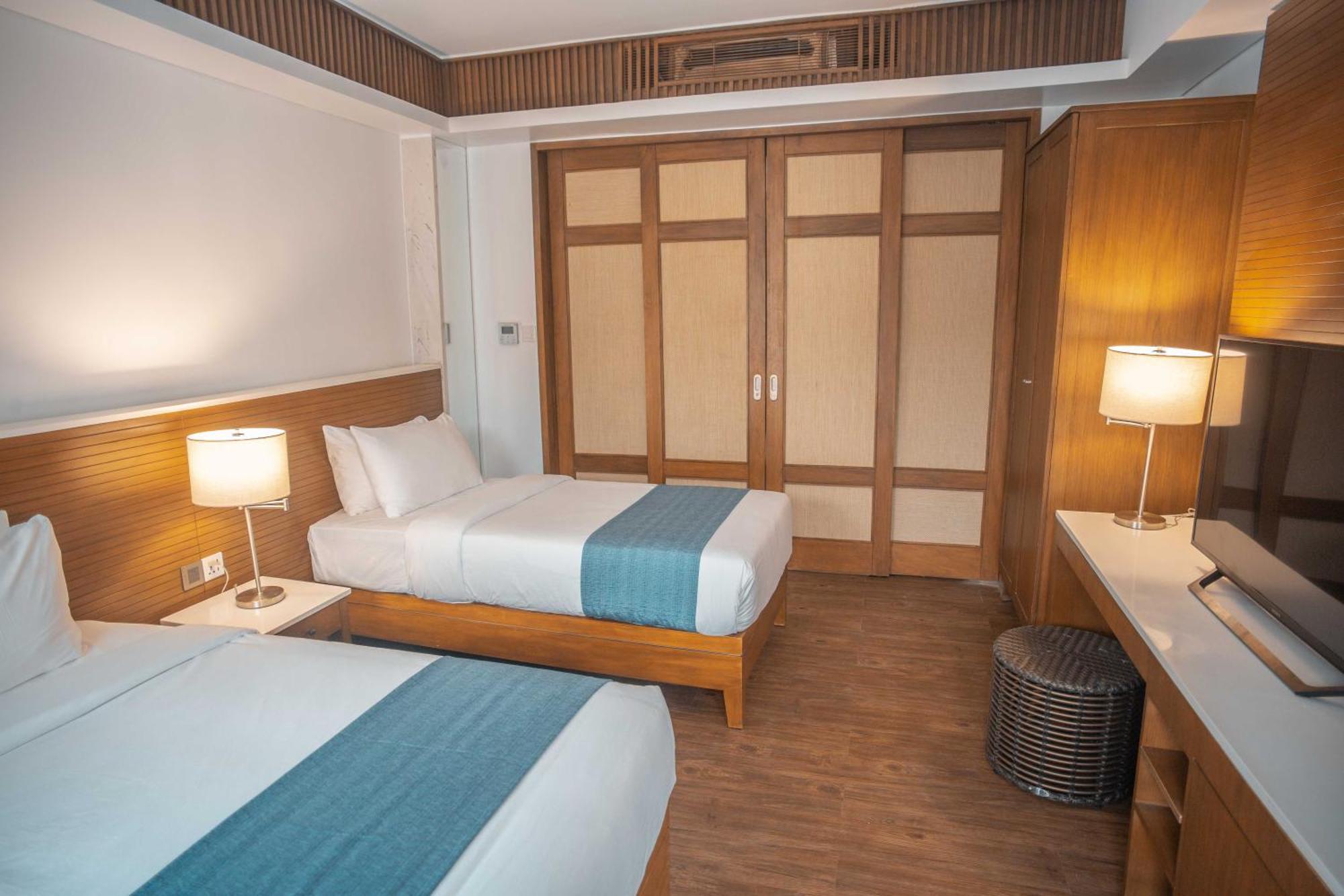 Deluxe Twin Room 25 m, 2 односпальні ліжка. Номер Твін з безкоштовними туалетно-косметичними засобами, халатами та окремою ванною кімнатою з душем, біде та феном. Номер з 2 окремими ліжками оснащений кондиціонером, телевізором із плоским екраном і кабельними каналами, шафою для одягу, сейфом