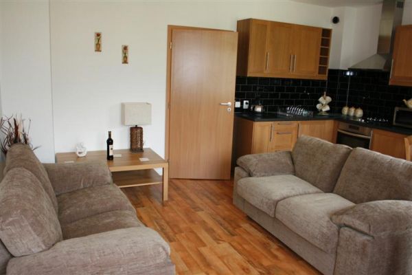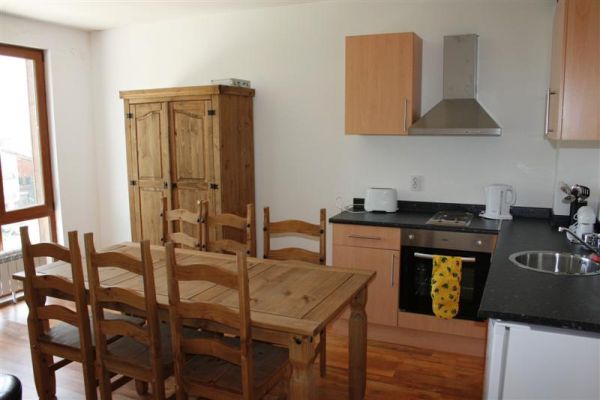 гостинная с диваном, кухонный блок и 2 спальни. Оборудование: кабельное телевидение, DVD, холодильник, плита, тостер, кофеварка, микроволновка, посуда, утюг, WI-FI.