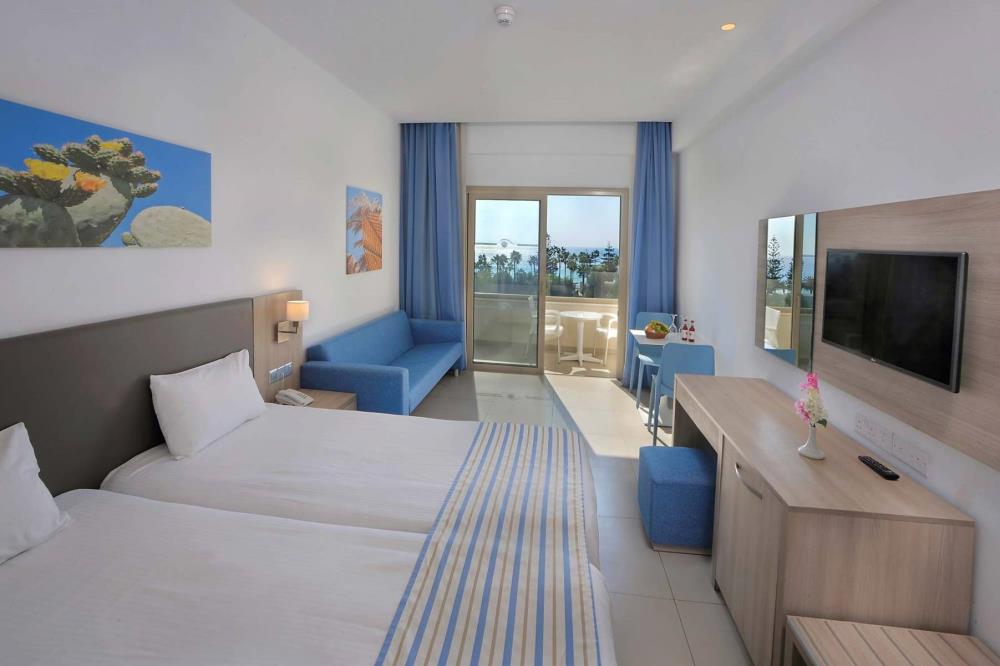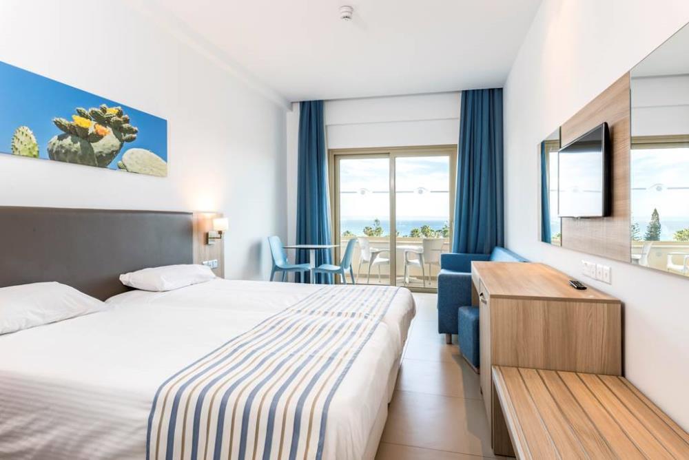 Готель складається з 203 зі смаком оформлених номерів, включаючи стандартні, покращені готельні номери (з видом на територію, боковим видом на море та видом на басейн/море), сімейні номери, бунгало-студії та бунгало з однією спальнею з чудовими зручностями. Main Building(головна будівля) Standard Hotel Rooms (2-3 persons, 19sqm) Номер оснащений двома односпальними ліжками, окремою ванною кімнатою (ванна/душ з туалетом), феном, індивідуальним кондиціонером, LED-телевізором із супутниковими та музичними каналами, міні-холодильником, сейфом, прямим телефоном, зоною відпочинку та балконом. Family Rooms (2-4 persons, 21sqm) Оснащений двома односпальними ліжками та 2 додатковими ліжками, 1 спільною зоною, зоною відпочинку, балконом, ванною кімнатою (ванна / душ або тільки душ з туалетом), феном, індивідуальним кондиціонером, LED-телевізором із супутниковими та музичними каналами, міні-холодильником, сейфом. сейф, прямий телефон. Superior Rooms (2-3 persons, 19sqm) Номери в середземноморському сучасному острівному стилі з двома односпальними ліжками, зоною відпочинку, балконом, ванною кімнатою (душ з туалетом), феном, індивідуальним кондиціонером, LED-телевізором із супутниковими та музичними каналами, міні-холодильником, сейфом, прямим телефоном. Двоспальні ліжка надаються за запитом у всіх типах номерів. Superior Family Rooms (2-4 persons, 21sqm) Номери в середземноморському сучасному острівному стилі з двома односпальними ліжками та 2 додатковими ліжками, зоною відпочинку, балконом, ванною кімнатою (ванна / душ і туалет), феном, індивідуальним кондиціонером, LED-телевізором із супутниковими та музичними каналами, міні-холодильником, сейфом. *, прямий телефон. Bungalows