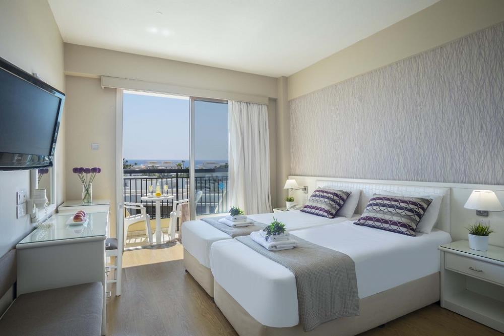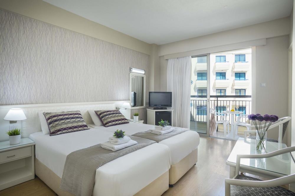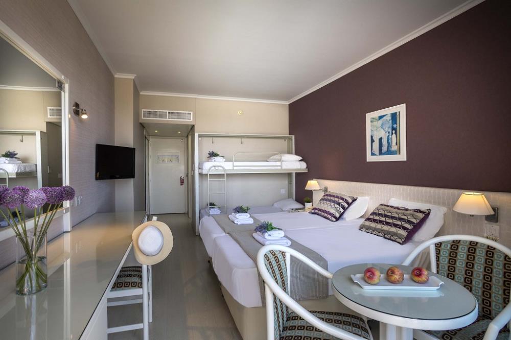 Готель складається з двох корпусів. Усі 147 номерів (бічний вид на море та внутрішній вид) були повністю відремонтовані та пропонують усі зручності 4-зіркового курорту. Усі номери оформлені в сучасному стилі зі світлими текстурами та сучасними меблями. Twin Inland View Twin Side Sea View Family Room Inland View Family Room Side Sea View Triple Room В номерах: Ванна кімната Фен для волосся Балкон або тераса Електричний чайник Кабельне/супутникове телебачення Телефон Безкоштовний Wi-Fi Обслуговування номерів (за додаткову плату) Кондиціонер/опалення в залежності від сезону Сейф (за додаткову плату) Міні-холодильник