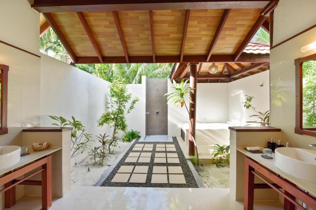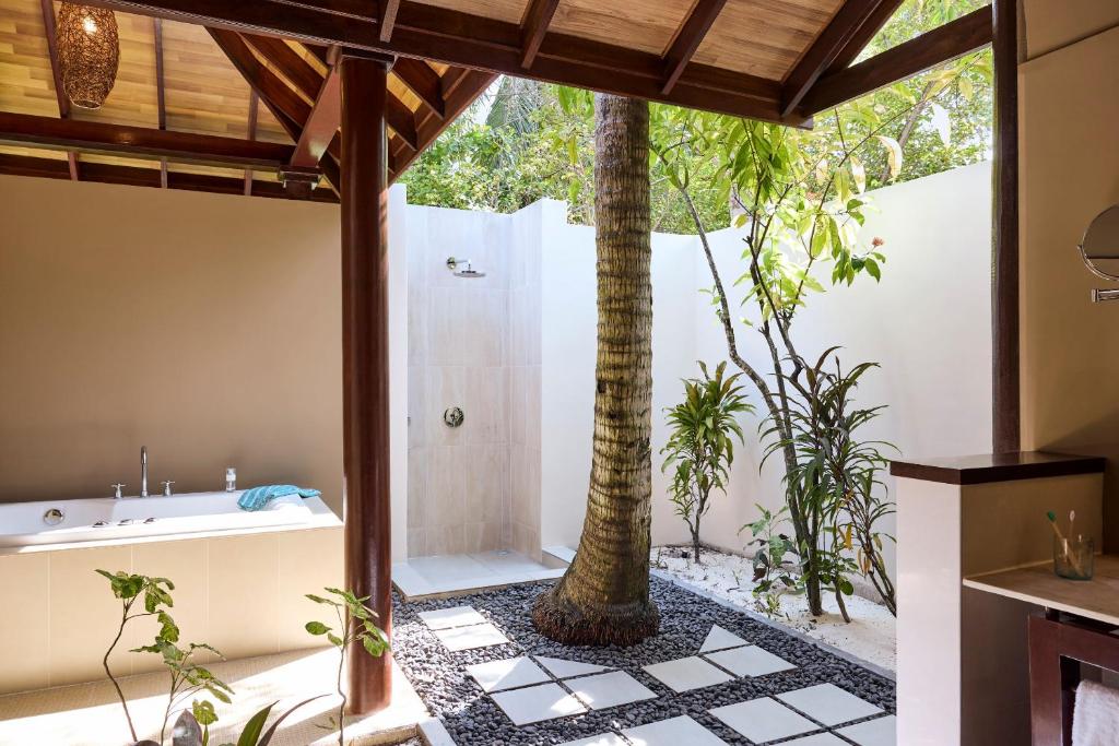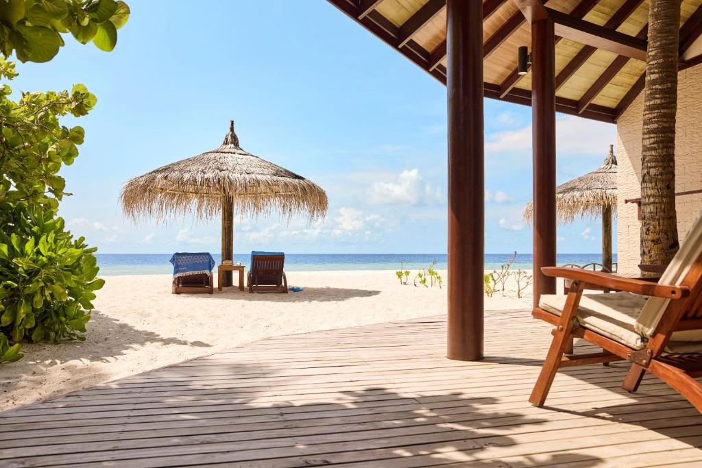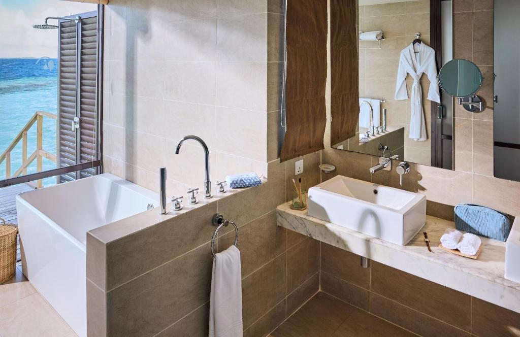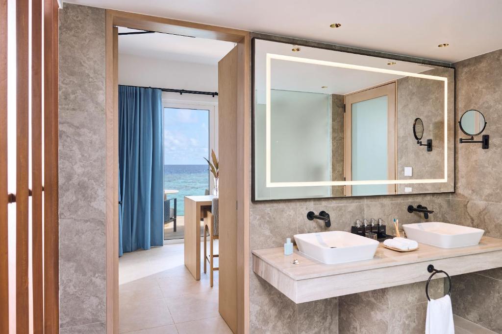 Funamadua One Bedroom Water Villa Pool (водна вілла, вид на море, вітальня та спальня, ліжко king-size, ванна кімната з 2 душами (1 з них на відкритому повітрі), частково крита тераса із відпочинковою зоною, басейн, гамак, прямий спуск у воду, 3 чол макс.,87 м)