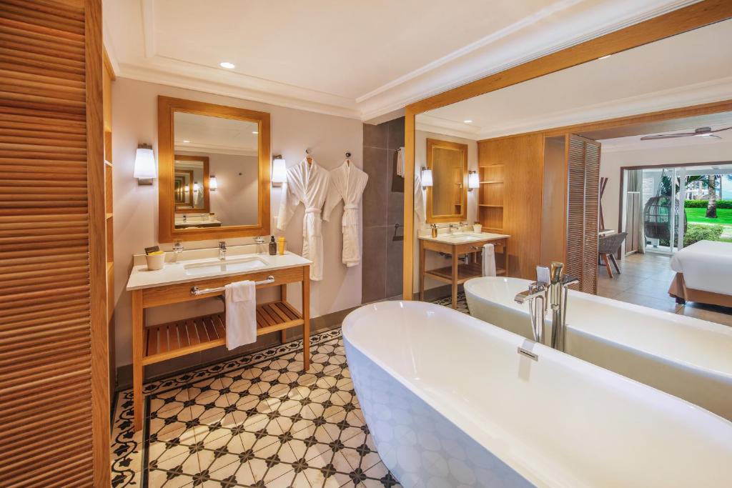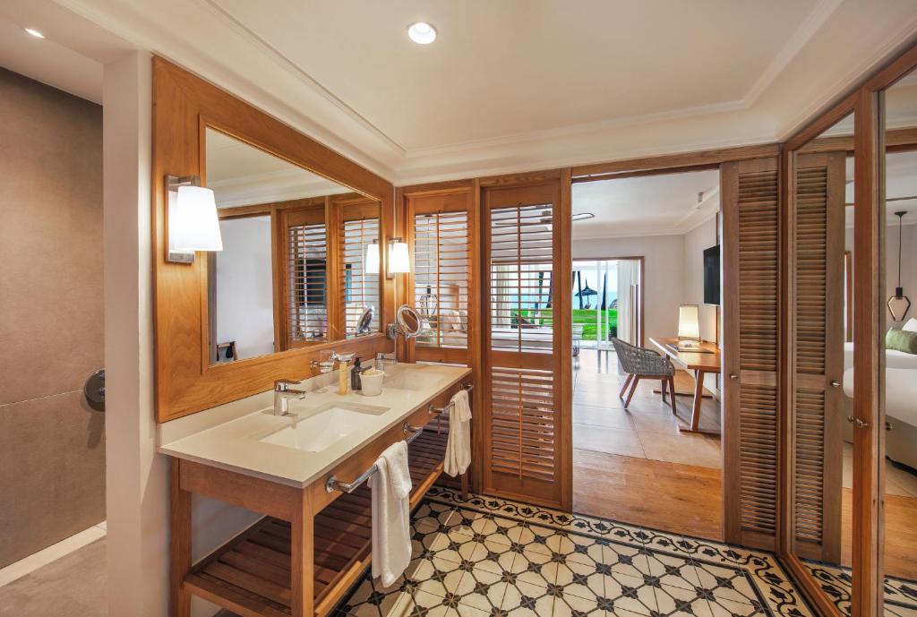 Sugar Beach пропонує вибір номерів та люксів з елегантно оформленим інтер'єром, що доповнює тему плантацій курорту, зберігаючи при цьому сучасну атмосферу. Кожен з численних номерів та люксів у Шугар-Біч має власний балкон або терасу з шезлонгом, пуфом та диваном для вашого комфорту. Standard Room Garden View та Standard Room Ocean View випромінюють шарм сучасного колоніального стилю та комфорт 5-зіркового готелю Маврикію. Ці просторі номери мають власну ванну кімнату з душем та туалетом. Деякі стандартні номери обладнані двоспальним ліжком розміру "king-size" або двома двоспальними ліжками; дитячі ліжечка доступні. Superior Rooms Ocean View та Superior Rooms Beach Access мають інтер'єр, подібний до стандартних номерів, але можуть похвалитися більшою ванною кімнатою з ванною, душем та окремим туалетом, а також більшою гардеробною. У всіх номерах є кондиціонер з дистанційним керуванням, все необхідне для приготування чаю та кави, міні-бар, телевізор із плоским екраном та супутниковими каналами, телефон з міжнародним зв'язком, Wi-Fi, електронний сейф, фен, розетка для бритви з прасувальними пристроями та дитяче приладдя, що надається за запитом. Sugar Beach пропонує два дуже комфортні Villas Suites Beach Access із сучасним інтер'єром. Кожен номер люкс ідеально мебльований та обладнаний; у номерах люкс є вітальня та спальня, кожна з яких має телевізор, чудовий вид на океан та прямий вихід на пляж. Номери Villa Suites також з'єднані з номером підвищеної комфортності на першому поверсі, що дозволяє використовувати їх як сімейні номери з двома спальнями. Окрім зручностей, що пропонуються у Standard та Superior Rooms, номери Villa Suites пропонують послуги дворецького, бар з декантером, кавоварку Nespresso та письмові столи з повним набором міжнародних електричних розеток. Праски та прасувальні дошки надаються за запитом.