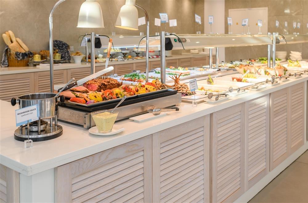 Головний ресторан із зоною відпочинку на відкритому повітрі доступний для сніданку та вечері, а ресторан біля басейну - для обіду та закусок протягом усього дня. Сніданок і вечеря подаються за системою "шведський стіл" з живою кухнею. Обід і закуски подаються по меню. Головний лобі-бар і бар біля басейну також доступні для прохолодних напоїв, кави, пива і, звичайно, фірмових коктейлів. Всі види пансіону доступні в режимі «тільки сніданок», «напівпансіон», «повний пансіон» і «все включено».