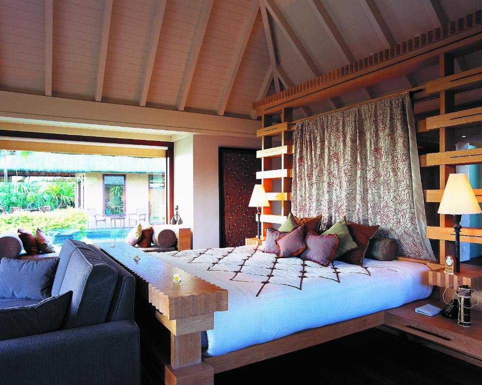 Вілли та павільйони в готелі Oberoi, Mauritius, захищені чарівними солом'яними дахами та пропонують чудові краєвиди на Індійський океан або пишний субтропічний сад готелю. Усі вілли обладнані меблями з сільського дуба та натуральної тростини, вікнами від стіни до стіни та розкішними мармуровими ванними кімнатами з видом на приватні сади, огороджені стіною.