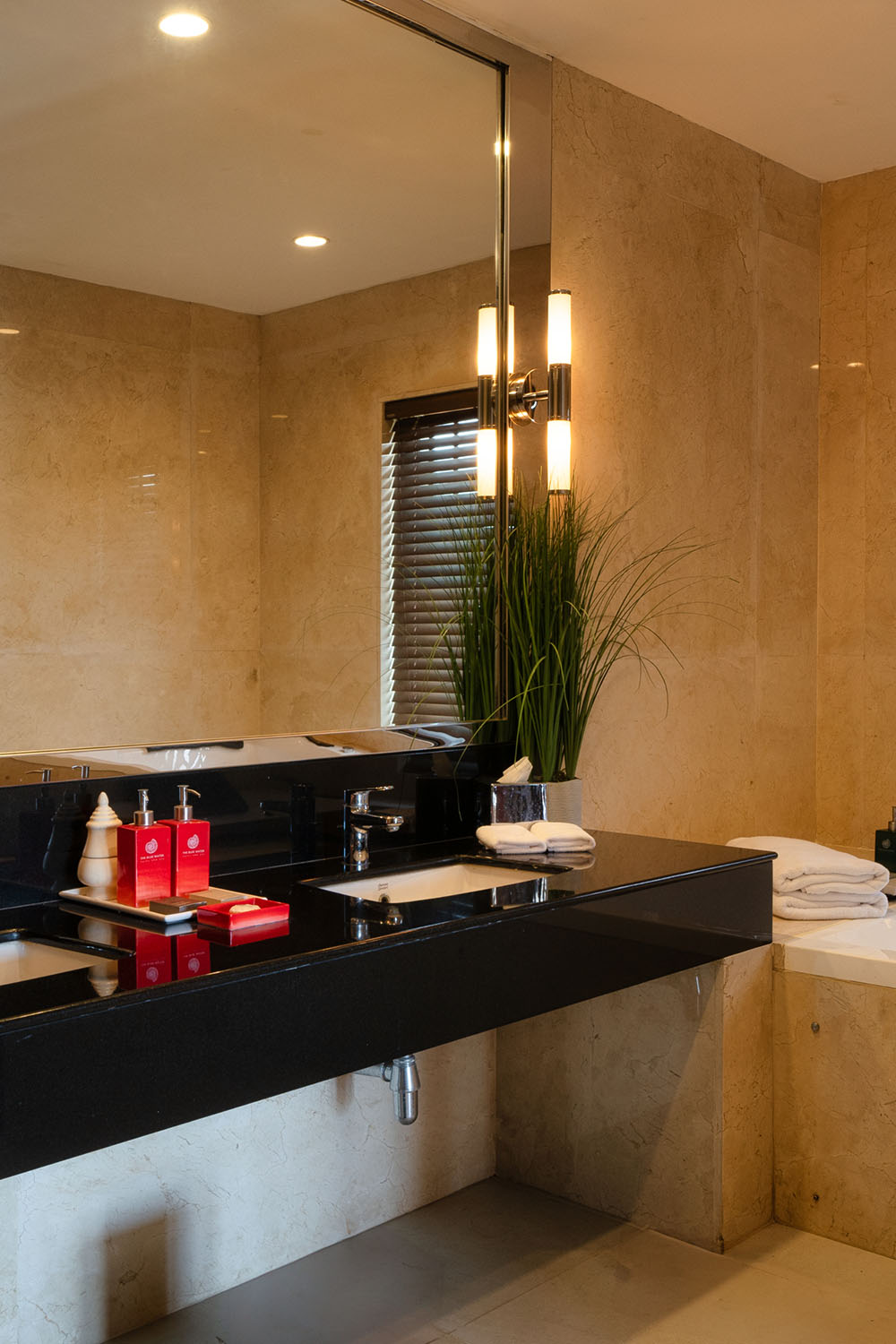 У готелі 140 номерів. Deluxe макс. 3 особи, 29,7 м Club Suite в окремому крилі, спальня із зоною вітальні, джакузі, макс. 3 особи, 49 м Executive Suite на останньому 4 поверсі, вітальня та спальня, джакузі, макс. 3 особи, 63 м Presidential Suite в окремому крилі, двокімнатний номер, на останньому 4 поверсі, спальня, простора зона відпочинку та зона їдальні, джакузі, макс. 3 особи, 133 м В номерах: сейф,халат,стельовий вентилятор,телевізор,тапочки,фен,кондиціонер,міні-бар,балкон або тераса,телефон,ванна та душ,набір для приготування чаю/кави,Wi-Fi безкоштовно.