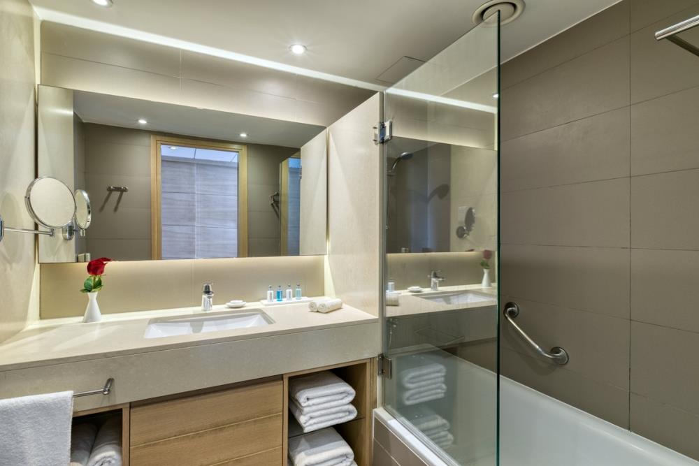 ПЛЯЖ Піщаний пляж (за 5 хвилин від готелю) Шезлонги та парасольки (безкоштовно) Пляжні рушники на виході з готелю (безкоштовно) БАСЕЙНИ Відкритий басейн у вигляді лагуни та з джакузі тільки для дорослих (523 кв. м., глибина: 1.4м) Закритий басейн у спа-центрі з підігрівом у зимовий період (12x6.5м, глибина: 1,6м) Дитячий басейн з прісною водою та розвагами (62 кв.м., глибина: 0.4 м) SPA Спа-центр (7 процедурних кімнат, критий басейн, масажі, фірмові процедури для обличчя та тіла, кімната "Мертве море", сауна, парова)