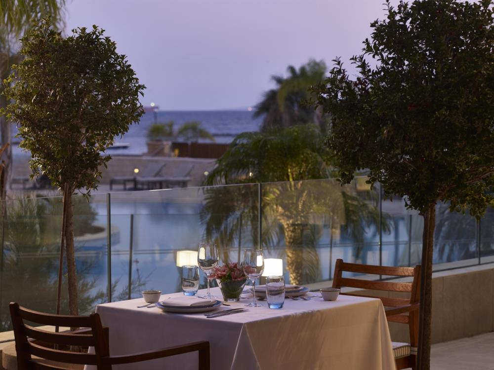 Основний ресторан Dionysos (сніданок, обід та вечеря) MezebyElliniko (традиційна грецька кухня) Ресторан японської кухні Akakiko Aphrodite Лаунж (жива музика кілька разів на тиждень) OceanBlue бар біля басейну