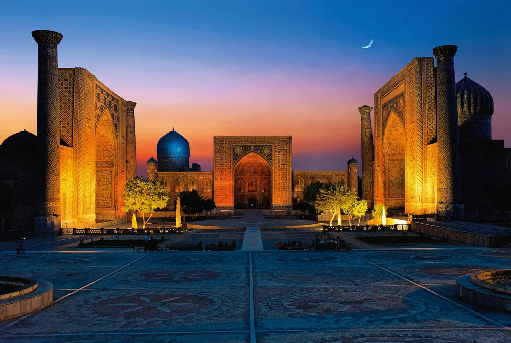 Узбекистан - країна в Центральній Азії, яка колись входила до складу СРСР. Славиться своїми мечетями, мавзолеями і спорудами, зведеними на Великому шовковому шляху - стародавній торгової дорозі між Китаєм і Середземномор'ям. Місто Самарканд, який був важливим пунктом на цьому шляху, отримав всесвітню популярність завдяки площі Регістан, яку оточують три прикрашені мозаїками медресе (мусульманські навчальні заклади), зведені в XV і XVII століттях.