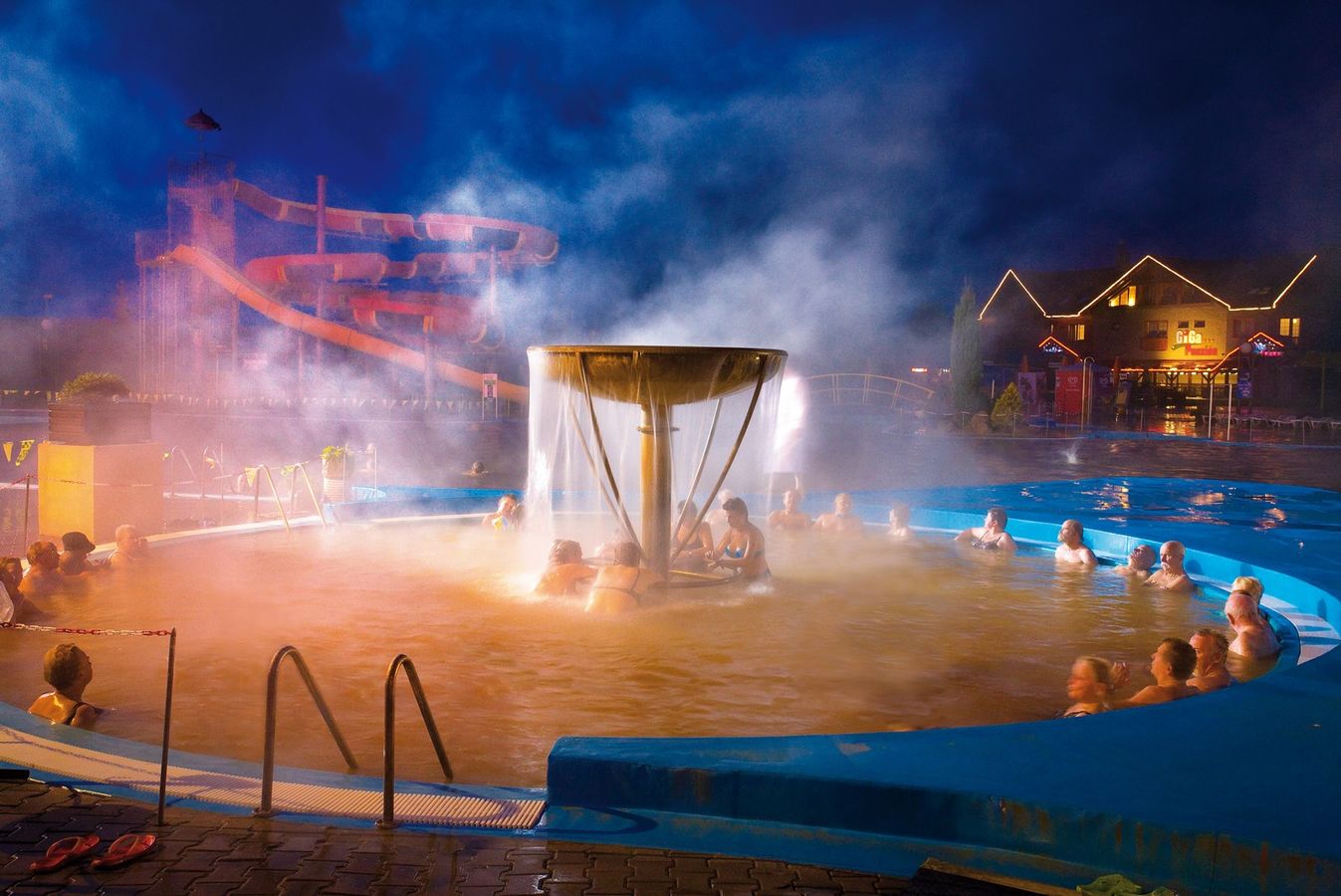 Уже давно в Липтовській долині були виявлені джерела термальних вод. Нагріта до 60°С вода піднімається до глибини 1987 метрів, її мінеральний склад створений для двигуна. Зараз в парку 8 термальних басейнів, температура води в них від 26 до 38°С. Усі вони розташовані під відкритим небом, причому два з них – плавальні, 5 – релаксаційні, а в одному розташовані 3 горки та водні атракціони.