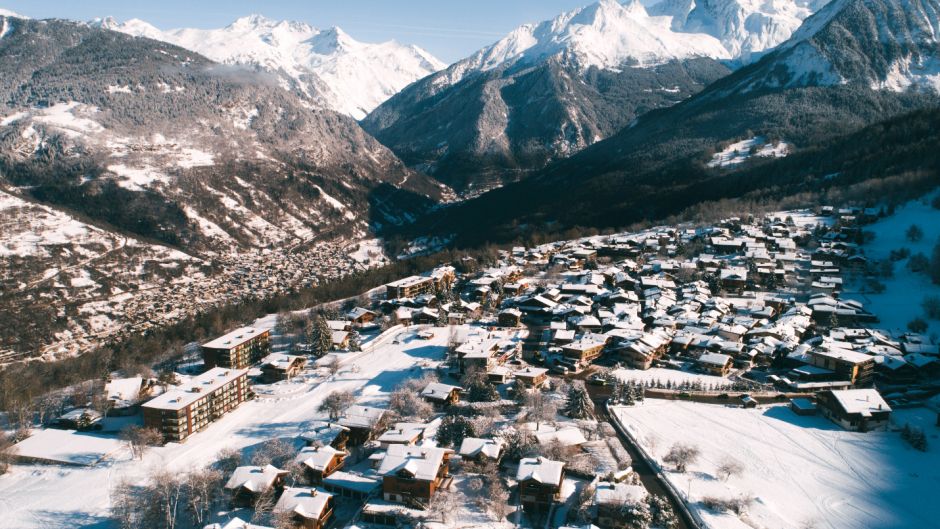 Куршевелем 1850. Тут створено всі умови для комфортного відпочинку з дітьми. Є ресторани, магазини і лижна школа, санна траса і картинг на льоду. Недороге проживання.