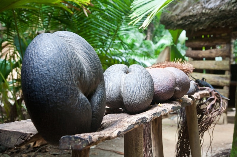 Головні сувеніри Сейшел – плоди морської кокосової пальми, і навіть лікер їх шкірки. Горіхи полірують, покривають лаком, наносять декоративне різьблення. Популярні підлогові та настінні шафки з морського кокосу.