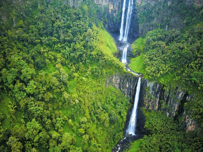 На території парку три великі водоспади: Keruru Kahuru – 271 м, Gura – 240 м та Chania. Водоспад Keruru найвищий із усіх трьох. Вода обрушується з великої висоти вниз, де перетворюється на величезний вируючий басейн. По обидва боки водоспаду є оглядові майданчики. З метою безпеки відвідувати водоспади рекомендується у супроводі озброєного провідника, тому що пробиратися доведеться через тропічний ліс, де мешкає багато великих диких тварин.